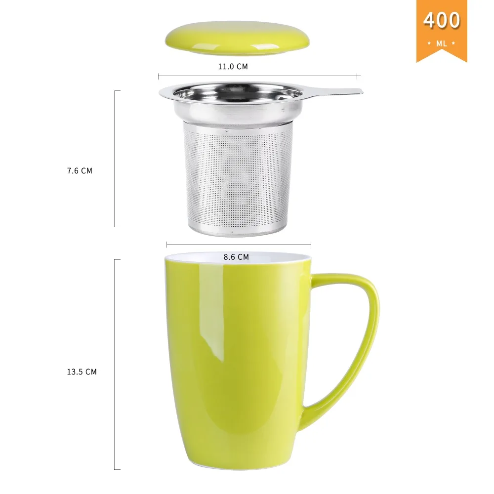 Удобный в использовании-Дизайн для любителя чая и удобен в использовании. Выберите чай, который вам нравится, и залейте листья чая в сеточку чайной кружки с заваркой, положите сетку в чашку, налейте горячую воду и закройте крышку на 5-20 секунд. Затем откройте крышку и выньте заварку с листьями и наслаждайтесь чаем.