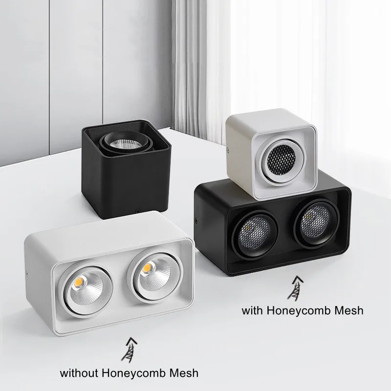 Квадратный светодиодный потолочный светильник с креплением на поверхность, сетчатая лампа GU10 приспособления для лампочки, регулируемый угол основания, держатель точечного светильника с двумя головками