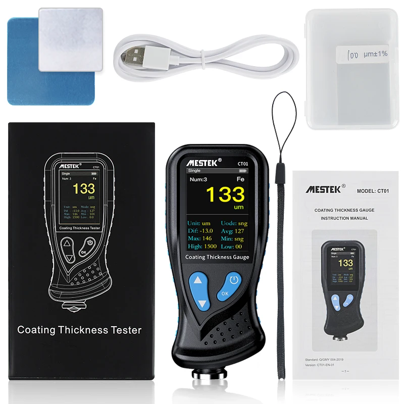 Толщиномер покрытия Голосовое вещание/четырехстороннее Вращение экрана/1500 хранение данных