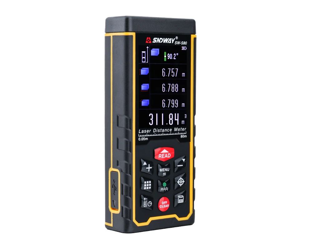 1. Легкая установка с яркой лазерной указкой, трудоемкий дальномер делает полевую работу легкой, бездумной и точной. Идеально подходит для дома, строительства и промышленности, особенно в больших областях, таких как комнаты, квартиры, здания, недвижимость, фабрики, склады и т. Д. 2. Двойная впрыска обеспечивает прочную и прочную сборку, Нескользящий Резиновый материал по краям обеспечивает надежное сцепление, и кнопки хорошо реагируют. 3, широкий диапазон измерений от 0,05 до 80 м/120 м, высокая точность измерения ± 2 мм, выбор нескольких единиц измерения метра, дюйма и футов; Цифровой уровень, большой TFT ЖК-дисплей, цифровой уровень, подключение USB. 4, несколько режимов измерения: измерение на одно расстояние, непрерывное измерение, измерение площади и объема, увеличение площади и объема/вычитание, Непрямое измерение Пифагора. 5, 2 года гарантии, функция хранения данных и очистки данных, функция хранения данных/отзыва, защита IP54, автоматическое/ручное отключение питания 6, если расстояние менее 10 м для измерения, лазерная точка и камера не совпадают с центром. Если расстояние более 10 м для измерения, лазерная точка и камера в одном центре. 7. Можно подключить к компьютеру и напрямую загрузить данные измерений.