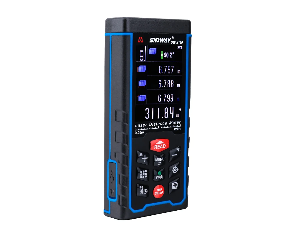 400ft 120 м ручной лазерный измеритель расстояния с цифровым уровнем, камерой и TFT ЖК-дисплеем, USB подключение, самокалибровка дальномер области и объем сложения/вычитания, проливания