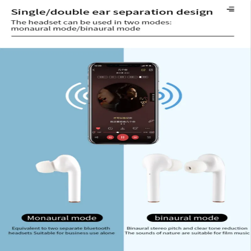 Настоящий беспроводной дизайн (TWS), индивидуальный левый и правый канал, HIFI звук, как левый, так и правый наушник с поддержкой Bluetooth, может использоваться как одна пара.