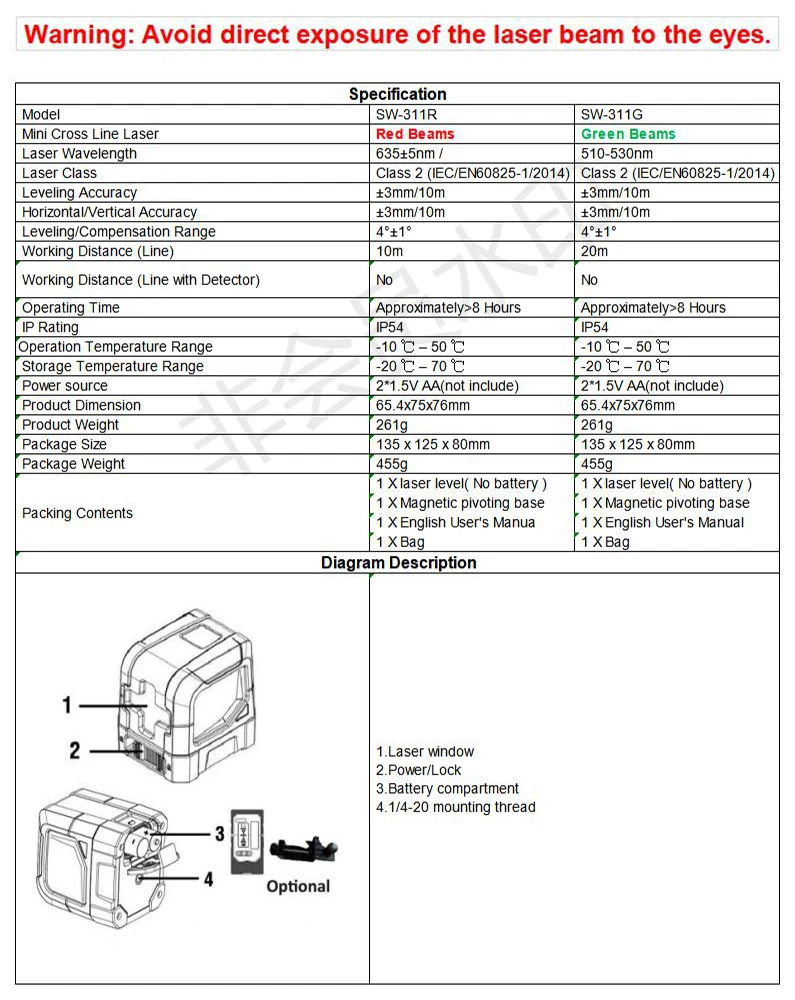 Лазер Sndway уровень самовыравнивающийся (4 градусов) зеленый красный лазерный луч 2 рисунками крестов и линий горизонтальный и вертикальный поворотный высокая точность самовыравнивания