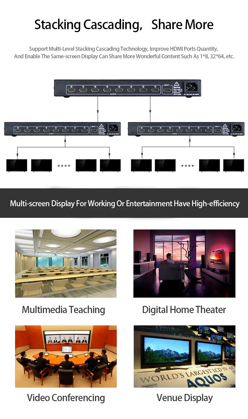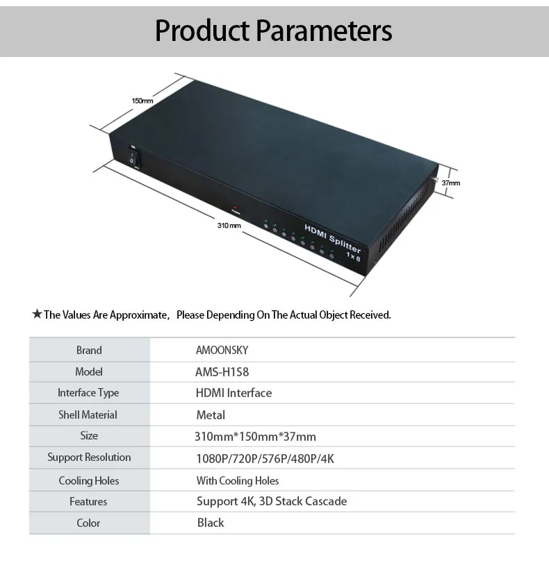 1 в 8 Выход hdmi сплиттер AMS-H1S8 поддержка 1080P HD Высокое Разрешение 3D эффект для led Прокат дисплей с подсветкой