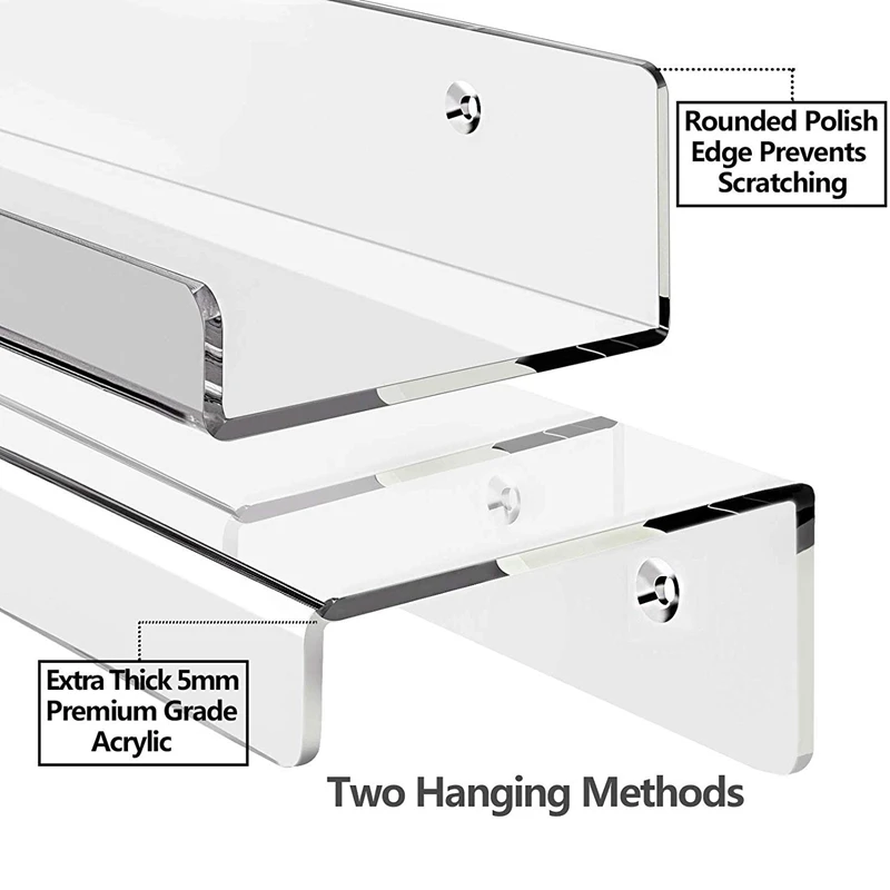Прочная конструкция-эти настенные полки изготовлены из очень прочного акрила толщиной 5 мм с Отличной атмосферостойкостью и намного прочнее стекла, что обеспечивает его прочность и безопасность от травм и поломок.