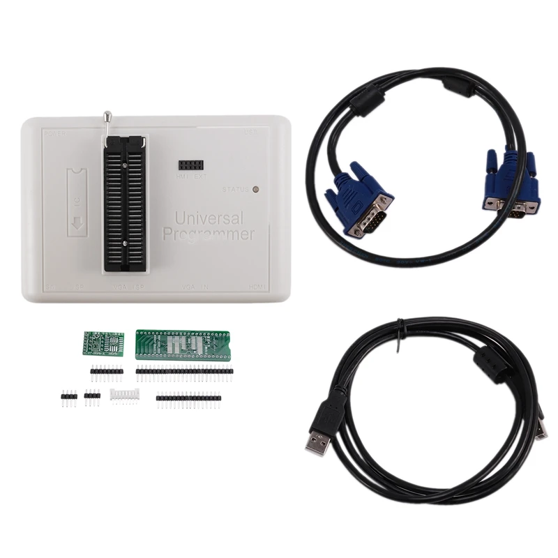 100% новый универсальный программатор RT809H EMMC Nand-FLASH TSOP56 TSOP48 кабель EDID ISP Header01 VGA HDMI BGA63 BGA64 BGA169;RT809H является своего рода экономически эффективным, надежным и быстрым универсальным программистом, подходит для всех компьютеров или ноутбуков на базе процессоров Pentium IV или лучших процессоров. Во время работы вы можете напрямую связаться с быстрым портом компьютера USB2.0, с программой драйвера внутри программного обеспечения, что делает установку более практичной.