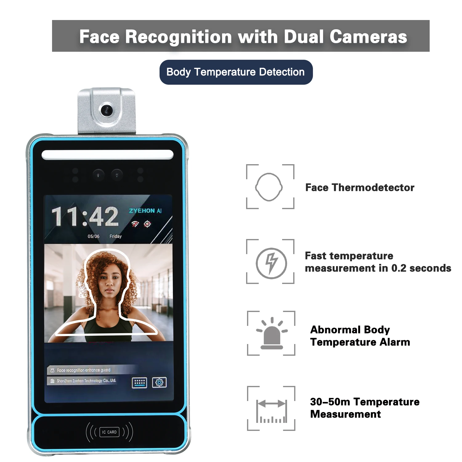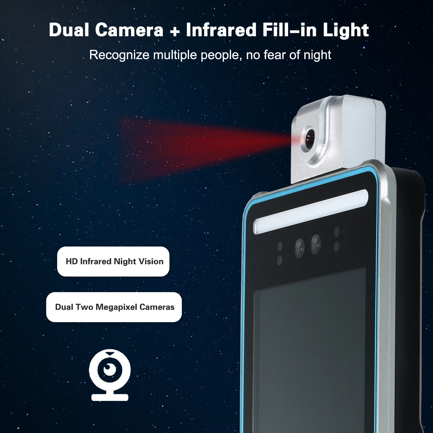 Многофункциональная машина посещаемости поддерживает распознавание лица и измерение температуры, а распознавание живого тела является более безопасным. Большой объем памяти можно хранить 100000 записей.