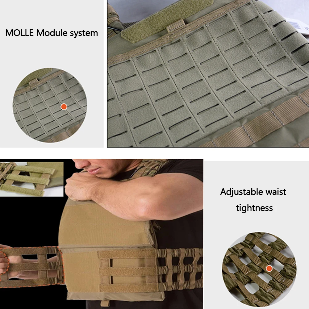 Свободно регулируемая талия, размер плечевого ремня, чтобы обеспечить вам максимальный комфорт 3 размера стальных пластин могут быть размещены, которые могут быть быстро разобраны в чрезвычайной ситуации, подходит для различных тактических сценариев и физической подготовки Изготовлен из 600D полиэстера, хорошо эластичный, водонепроницаемый и более прочный Поясная сторона выдолблена, чтобы уменьшить вес жилета, и оснащена эластичными лентами для обеспечения стабильности и комфорта жилета, когда вы напряженно тренируетесь Он поставляется с подкладкой из сетчатой подкладки, чтобы обеспечить комфорт и воздухопроницаемость для вашей спины Жилет Molle можно снять через плечо и с обеих сторон быстроСпецификация: