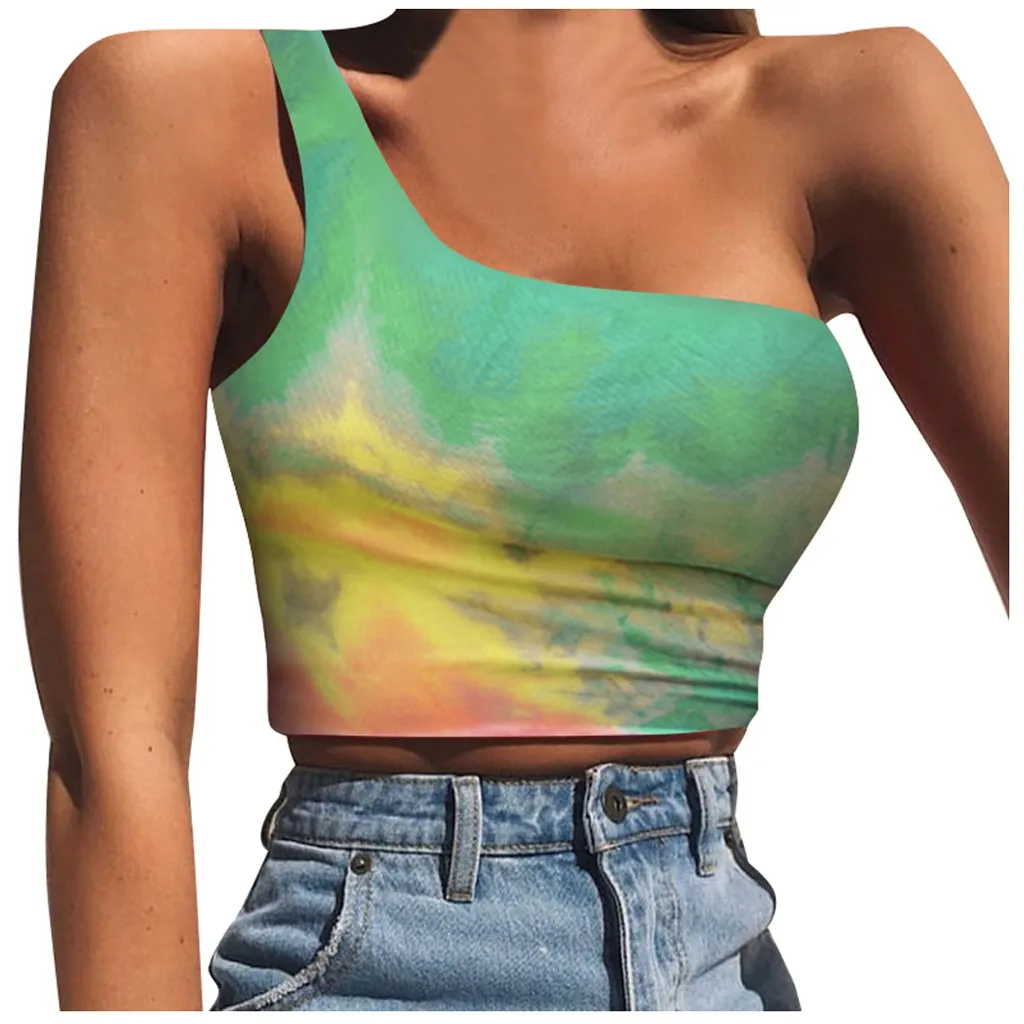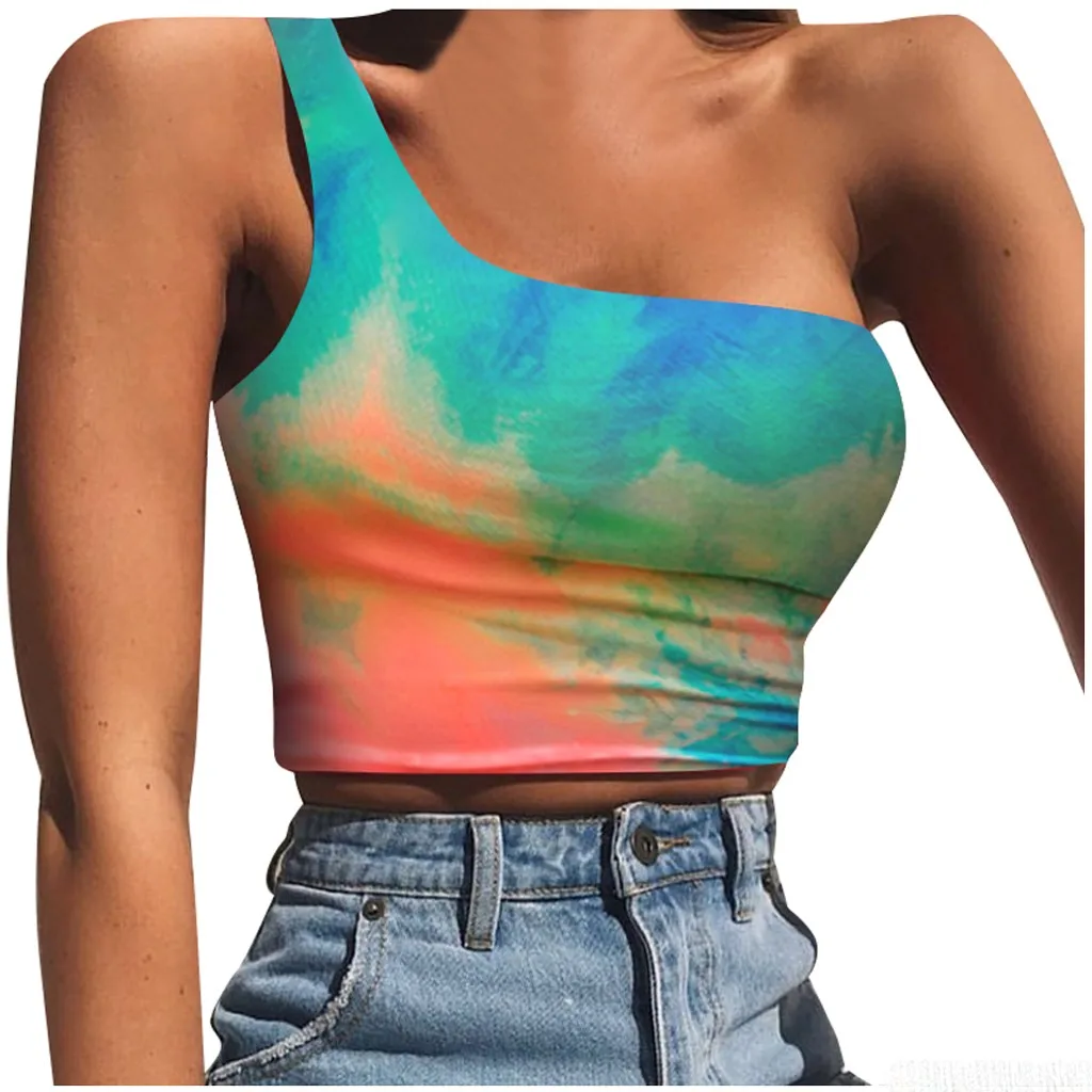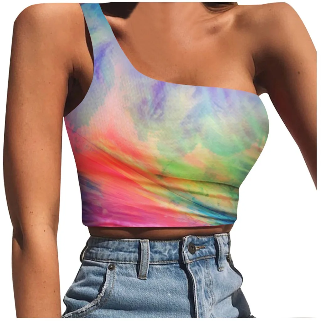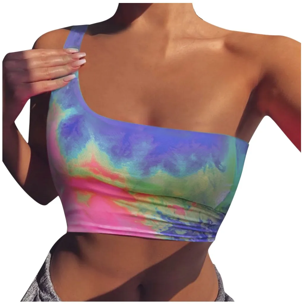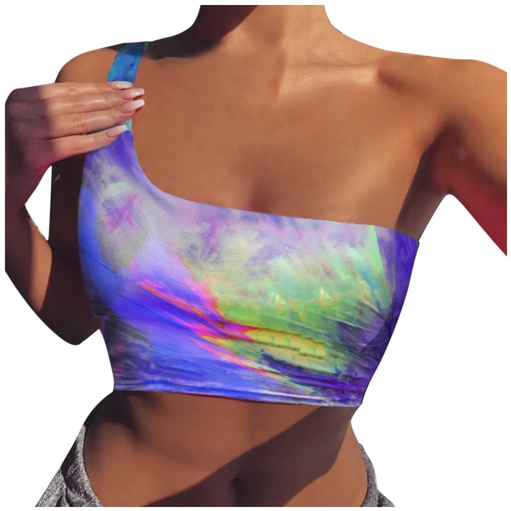 Женский женский укороченный топ с завязками на одно плечо, сексуальный спортивный бюстгальтер, тонкий топ-майка