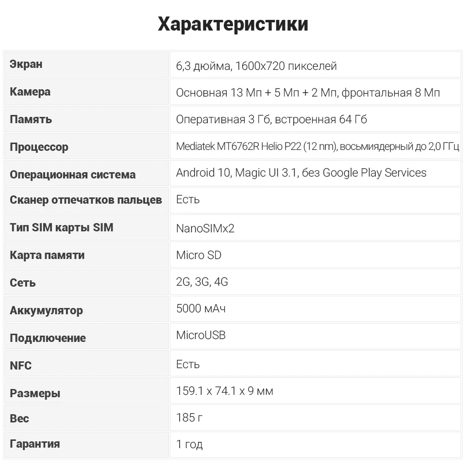 Характеристики