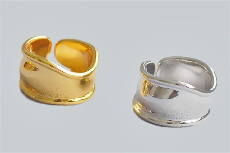 Женские широкие гладкие кольца из стерлингового серебра 2020 пробы в Корейском стиле, большие золотистые кольца неправильной формы, 925