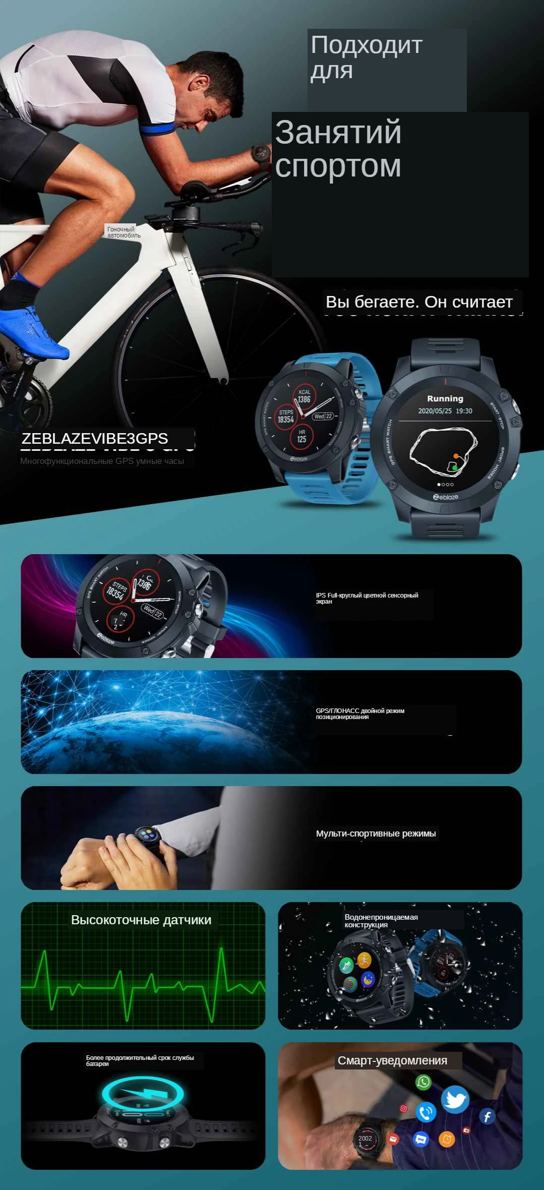 GPS VIBE 3 оснащен передовым оптическим датчиком сердечного ритма, который может выполнять 24-часовое непрерывное высокоточное Обнаружение сердечного ритма, сохраняя ваше здоровье все время.