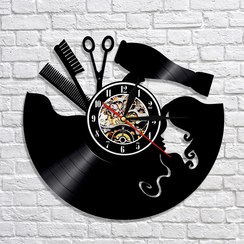 Парикмахерская виниловая запись настенные часы барбершоп салон красоты салон часы барбершоп светодиодный настенные часы домашний декор reloj de pared