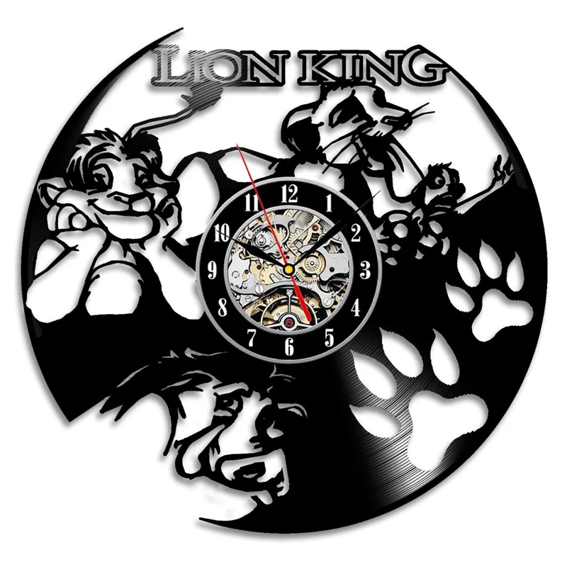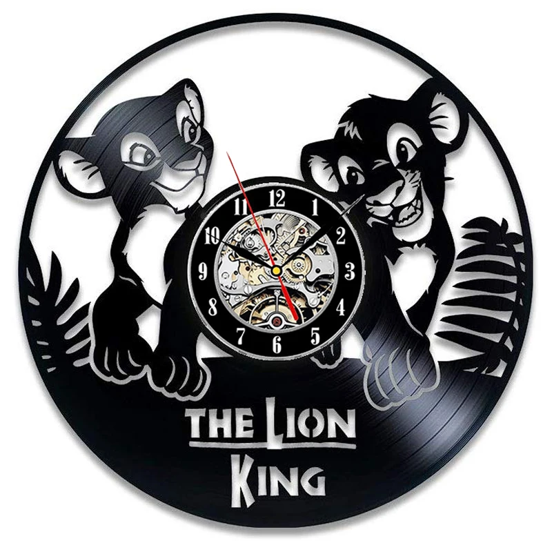 Виниловые Настенные часы с изображением короля льва милые Мультяшные часы из винила светодиодный настенные часы современный дизайн Декор для гостиной reloj de pared