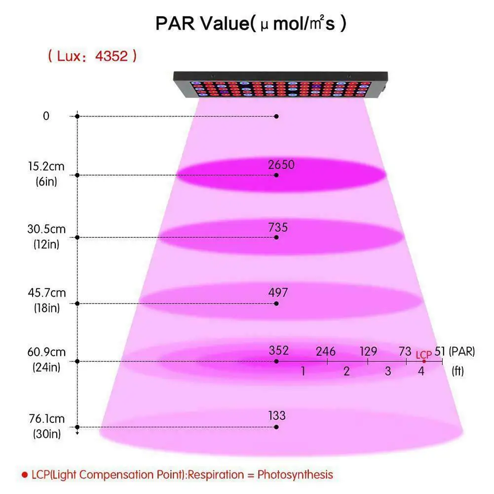 Синий-18 светодиодов (длина волны: 430нм, 460нм): помощь растениям в выращивании Красный-53 светодиодный (длина волны: 630nm 660nm): помощь растениям в выращивании и цветении, красный светодиодный ключ для цветущих растений ИК-2 светодиода (длина волны: 720 нм): ИК может помочь растениям в выращивании, мы добавляем 2 шт. ИК-светодиодов, если вам это действительно нужно в особой ситуации для полного спектра. (очень тусклый) УФ-2 светодиода (длина волны: 380 нм): уф может помочь растениям выращивать и уничтожать насекомых, мы сделали Специальный дизайн и добавили УФ-и Инфракрасные светодиоды для ваших нужд. Больше аналогично солнечному свету, лучше для роста ваших растений. (очень тусклый) (Наиболее подходящий светильник для увеличения урожайности коммерческого выращивания) используется на всех стадиях выращивания растений, рост и цветение.
