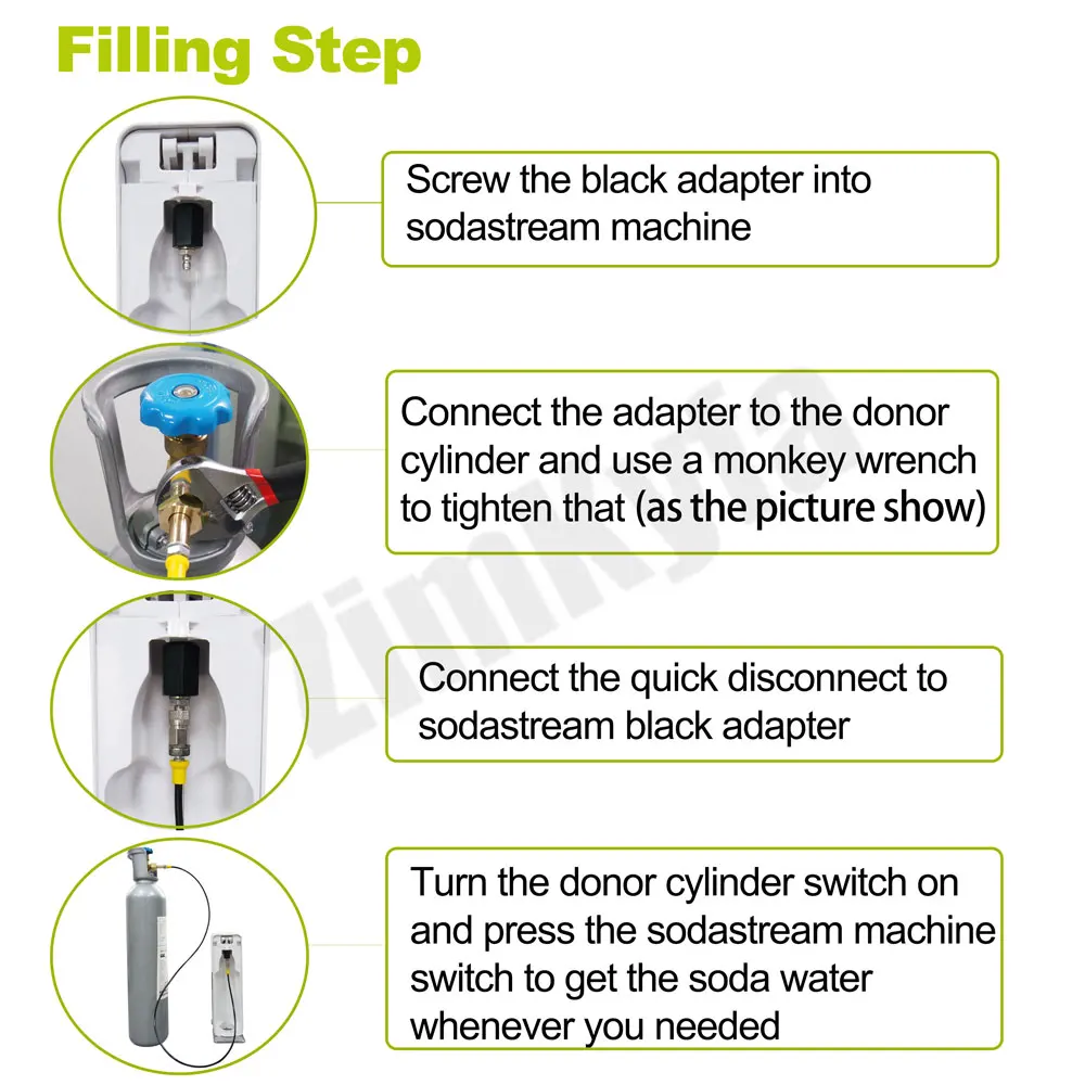 2. Экономьте деньги на заправках. Эта система позволяет подключать вашу Soda-Club / Sodastream машину к внешнему несифонному СО2 танку, который имеетРазъем CGA320 (США, CAN, Бразилия, Колумбия, Филиппины...) или DIN477 / W21.8-14 (правая рука) разъем/JIS m22-14 Клапан СО2 бака (кор, JP, Великобритания, Германия, франция, Польша, Норвегия, Швейцария, Россия, Украина, Южная Африка, Швеция, Чили, Чехия, Сингапур ..)