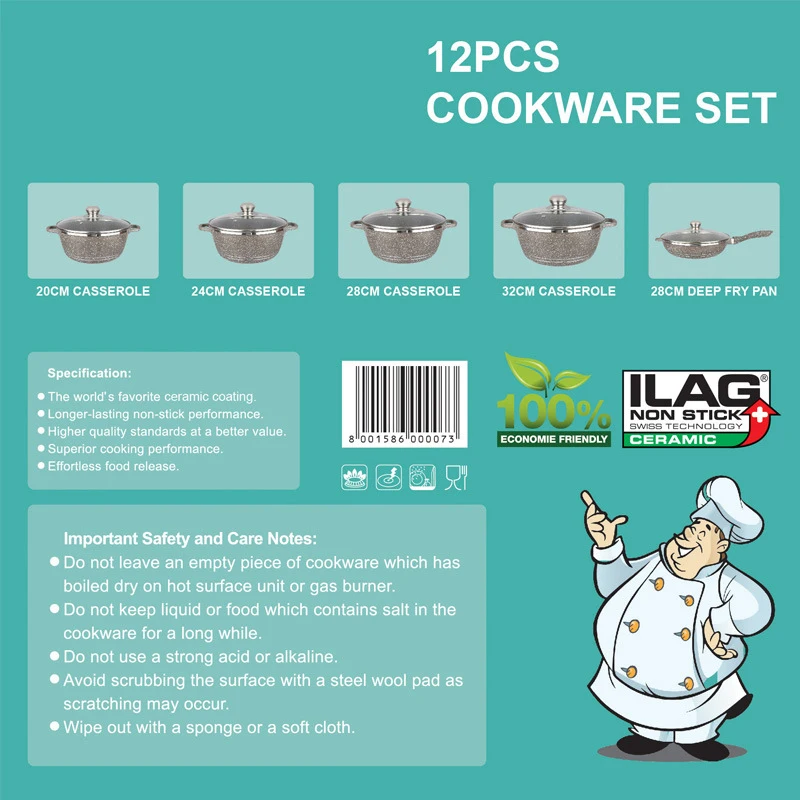 12 шт., посуда DESSINI с гранитным покрытием