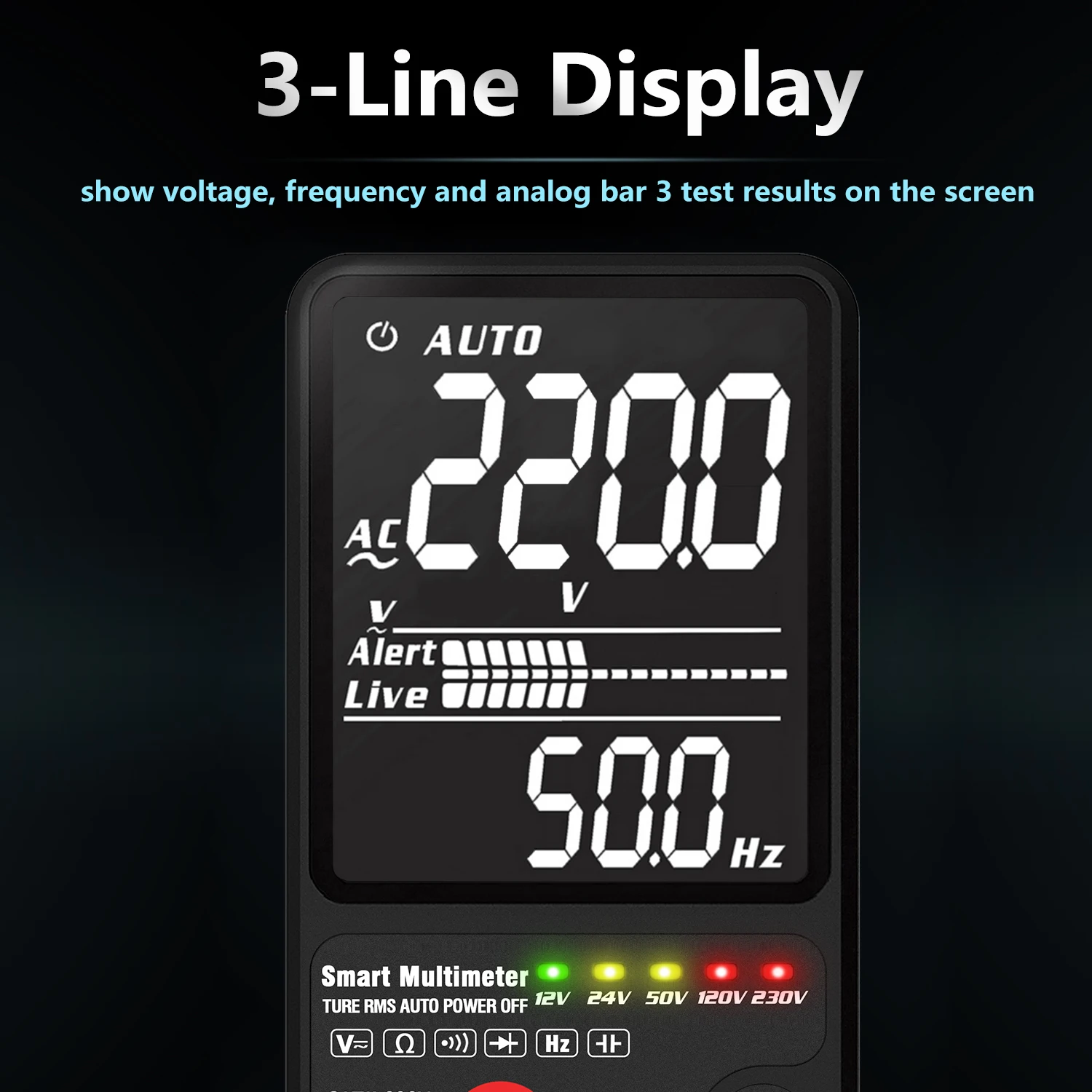 V-оповещение (Бесконтактное Обнаружение напряжения): Интеллектуальный дисплей опасного напряжения высокого, среднего и низкого. (звуковой сигнал)