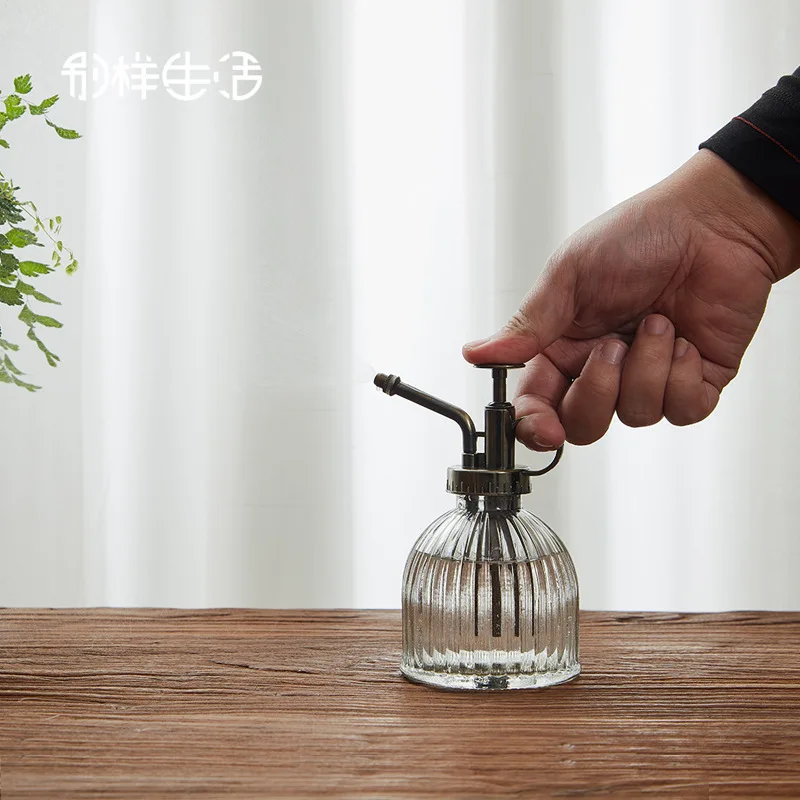 Стекло бутылка с распылителем для полива имеет удобный держатель для безымянных пальцев, таким образом его удобнее распылять растения.
