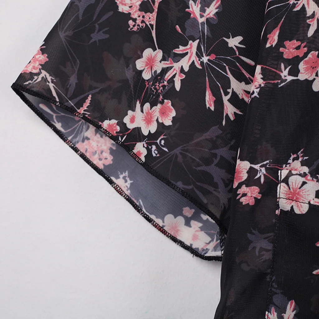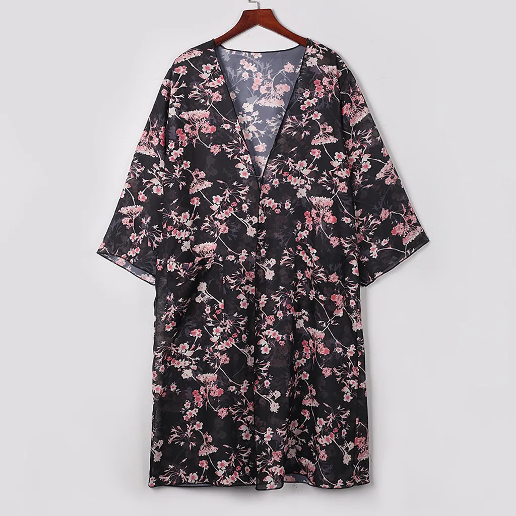 Стиль: идеально подходит Как уличная одежда, пляжная одежда, курортная одежда, повседневное кимоно, пляж Купальный костюм накидка, модная шифоновая блузка, Сексуальная Пляжная накидка Топ, Тонкое пальто для весны, лета, осени и т. д. Универсальный штапель гардероба Для жарких дней на улице и для холодного кондиционирования воздуха в помещении