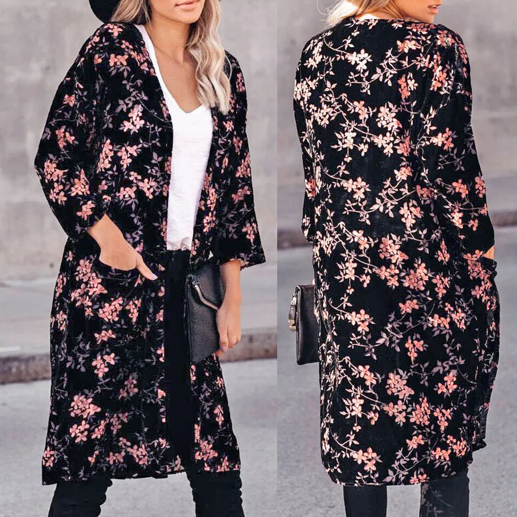 Особенности: открытая спереди, рукав до локтя, цветочный рисунок, свободный крой, повседневная одежда, Леопардовый принтС принтом,Свободный кардиган,Длинный кардиган,Шифоновое кимоно, полупрозрачная шаль.