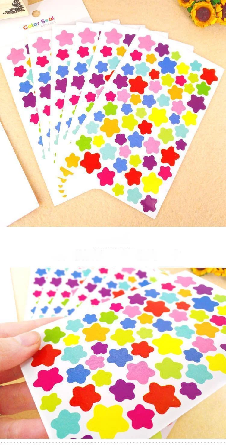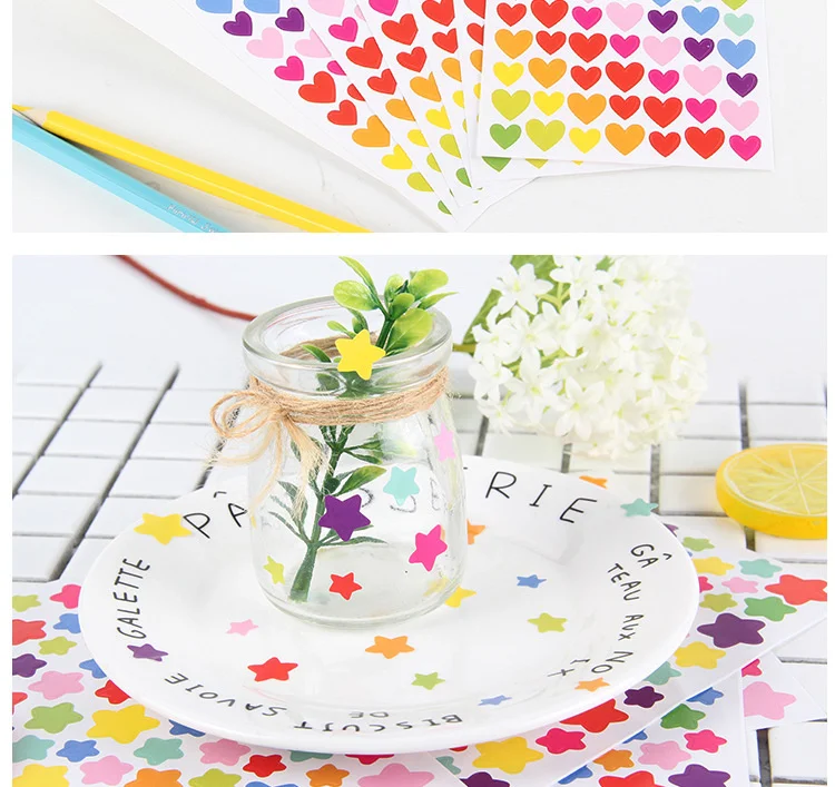 - Product Name: 6 Sheets/Set Kids Stickers Cute Heart Star Dot Shape Sticker For Scrapbooking Diary Photo Album Decoration Supplie Girl Boy Gift