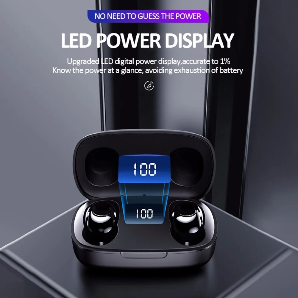 There is a portable charging box with LED digital display, which allows you to charge earphones anytime.