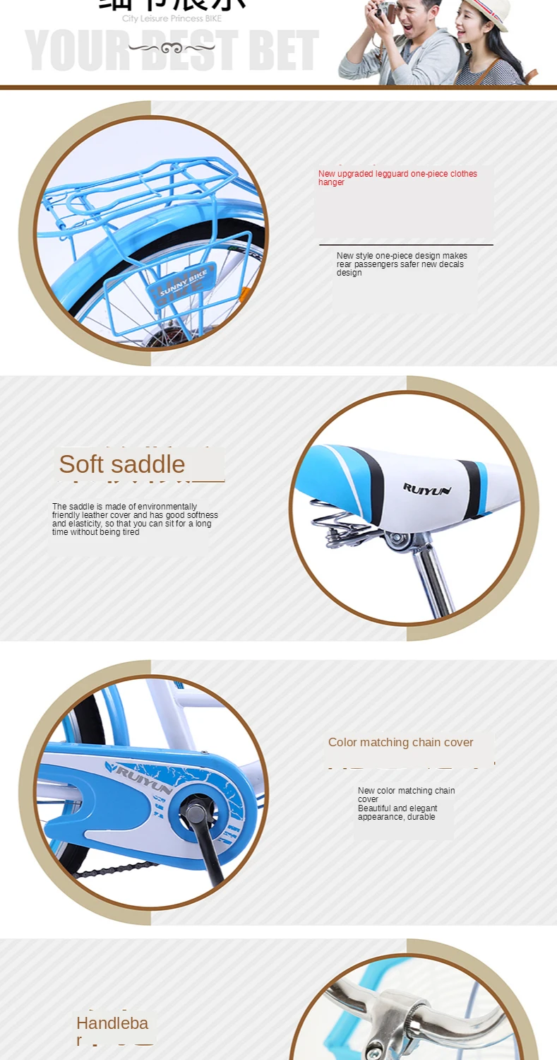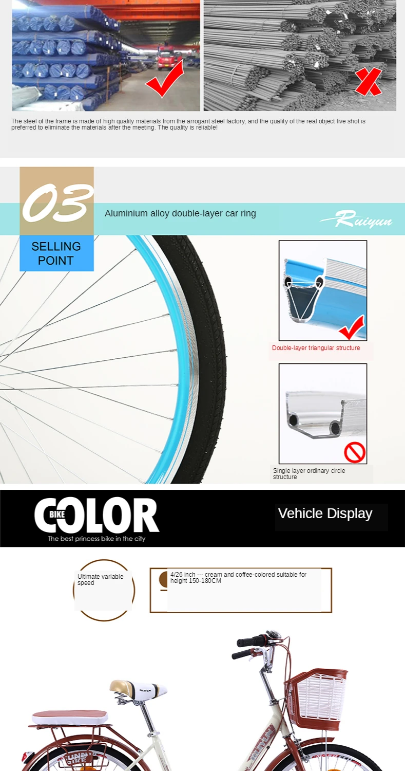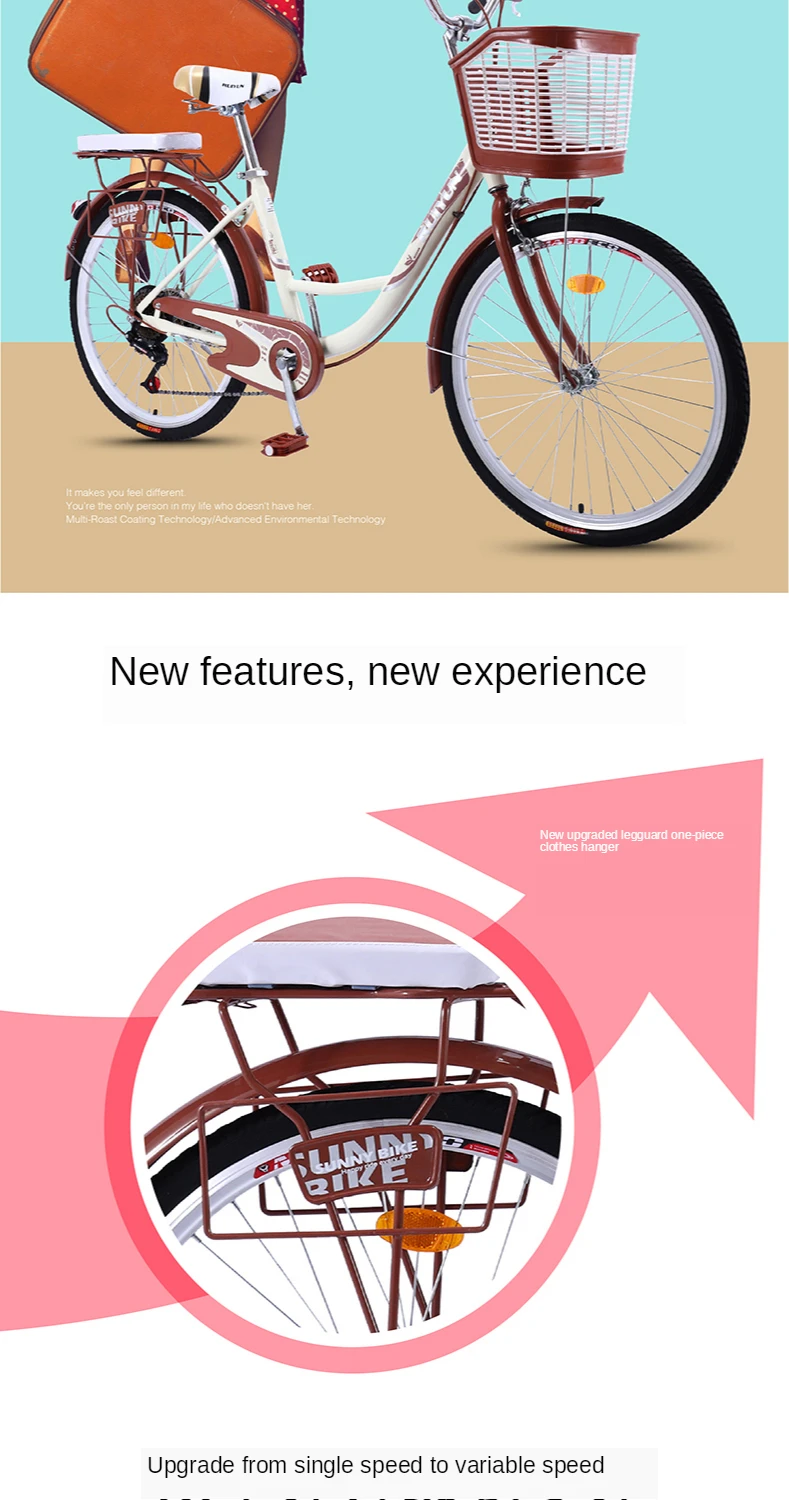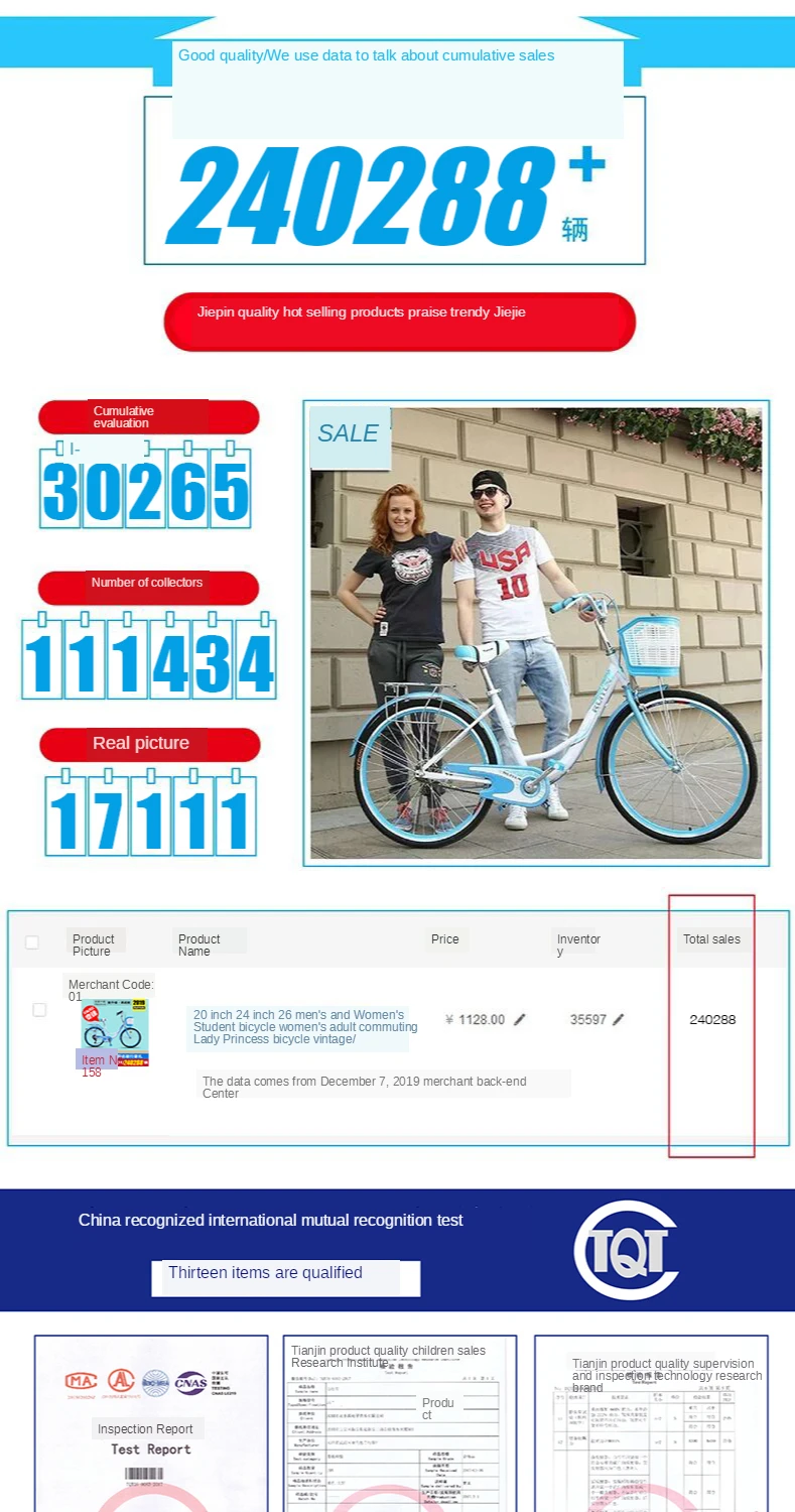1. Размер колеса: 24 или 26 дюймов 2. 24 дюйма подходит для высоты: от 150 до 170 см 3. 26 дюймов подходит для высоты: от 165 до 180 см 4. Скорость: 6 скоростей 5. Материал рамы: Высокоуглеродистая сталь 6. Тормозная система: передний тормоз V, задний тормоз 7. Вес нетто: 15 кг 8. Вес брутто: 17 кг 9. Размер упаковки: 160*50*120 см 10. Размер транспортного средства: 165*38*80 см