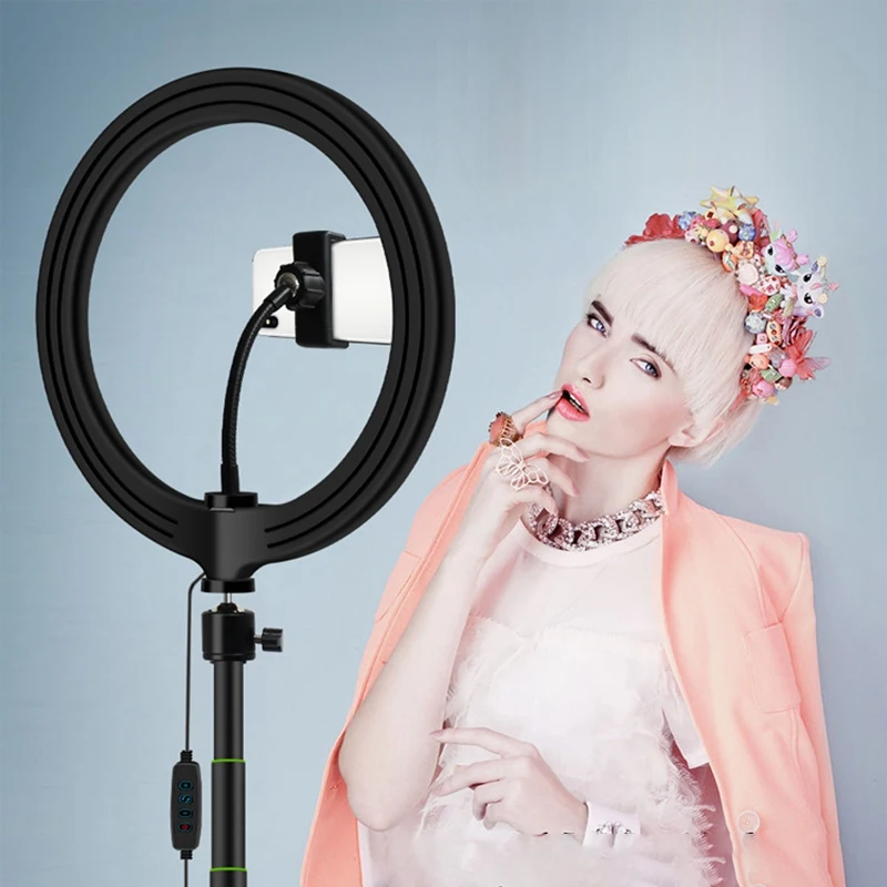 10-дюймовый кольцевой светильник с подставкой для штатива, держатель для телефона, кольцо с фотографией, лампа для макияжа, прямая трансляция, YouTube, видео с USB разъемом