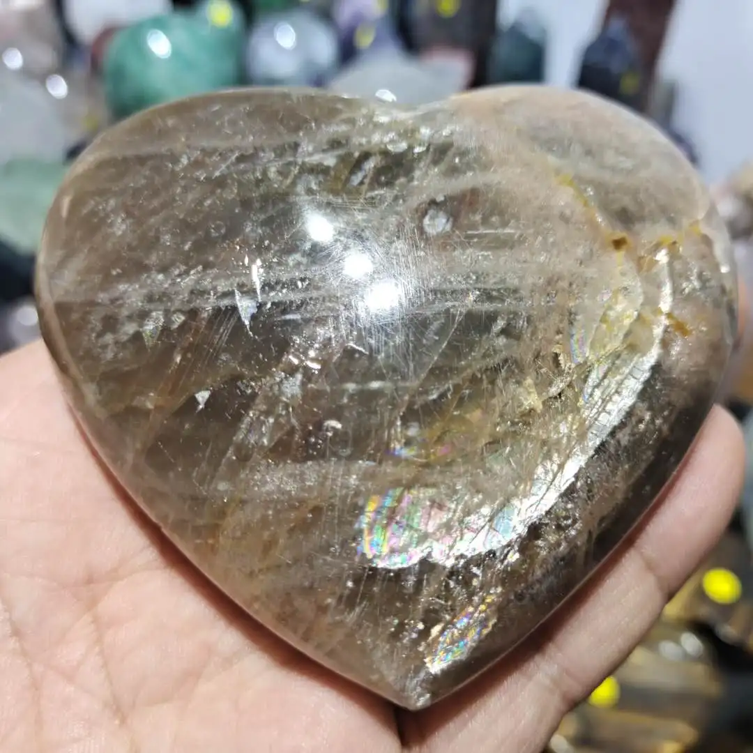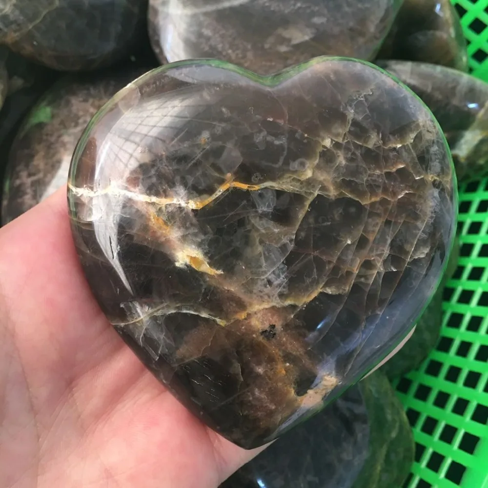 Высококачественный натуральный камень, черный лунный камень, хрустальные сердечные камни для рейки, драгоценные камни чакры и лечебные кристаллы, украшение для дома