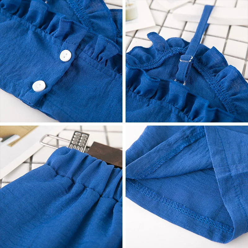 Летний комплект одежды для девочек; Топ Без Рукавов на бретельках; Длинные штаны с эластичной резинкой на талии; Комплект детской хлопковой одежды; Повседневная однотонная детская одежда