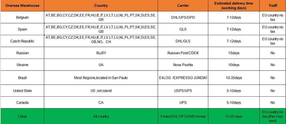 Этот продукт мы создали склад в Испании, когда вы его покупаете, если вы находитесь в ЕС, мы отправим в вашу страну, что вам не нужно рассматривать таможенное оформление и пошлины, и это будет быстрая доставка.