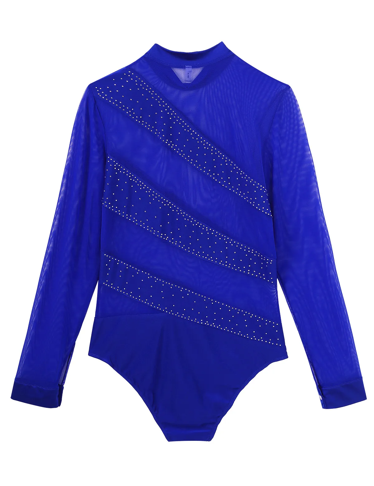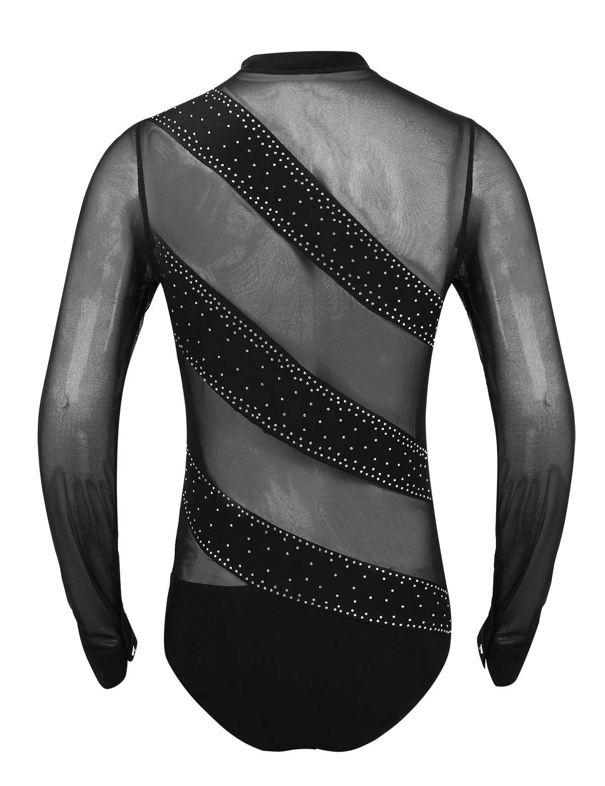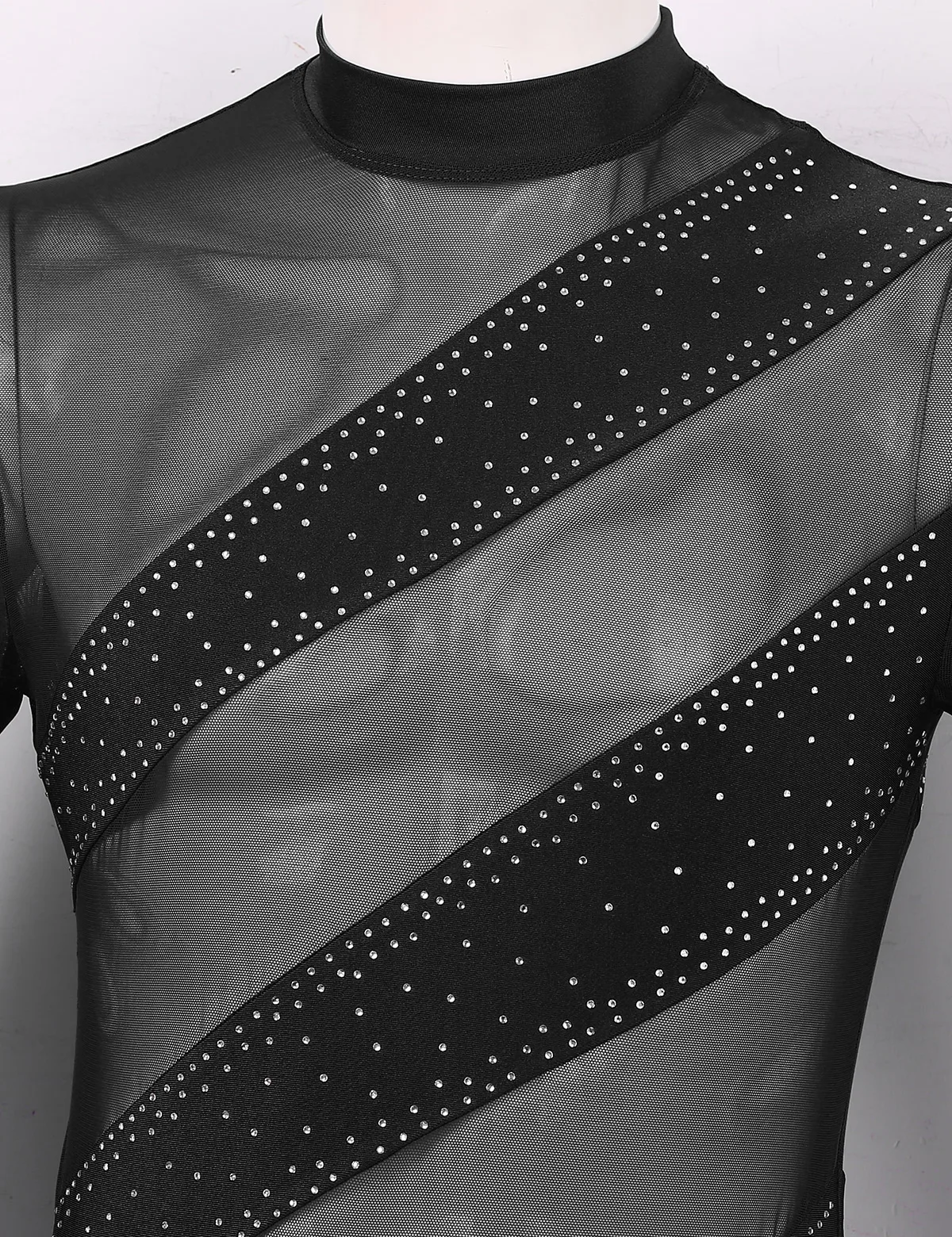 # M-XXL, мужские блестящие стразы, круглый вырез, длинные рукава, сетчатый купальник, боди для латинских Танго, румбы, танцев