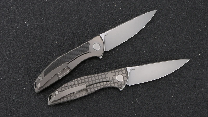 Общая длина: 193 мм Длина лезвия: 85 мм Длина ручки: 110 мм Материал лезвия: K110 Толщина лезвия: 3,47 мм Ширина лезвия: 24,5 мм Твердость: 58-60HRC Поверхность лезвия: мойка камня Ручка: Титан + CF Конструкция: Керамический шарикоподшипник, встроенная стальная шайба, вставка из легированной стали Вес: (углеродное волокно/73,8 г) (титановый сплав/83,3 г) Комплектация: нейлоновая молния * 1/нож * 1