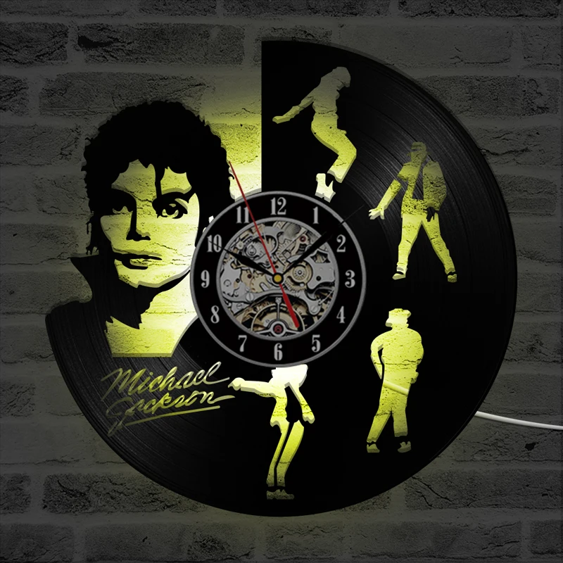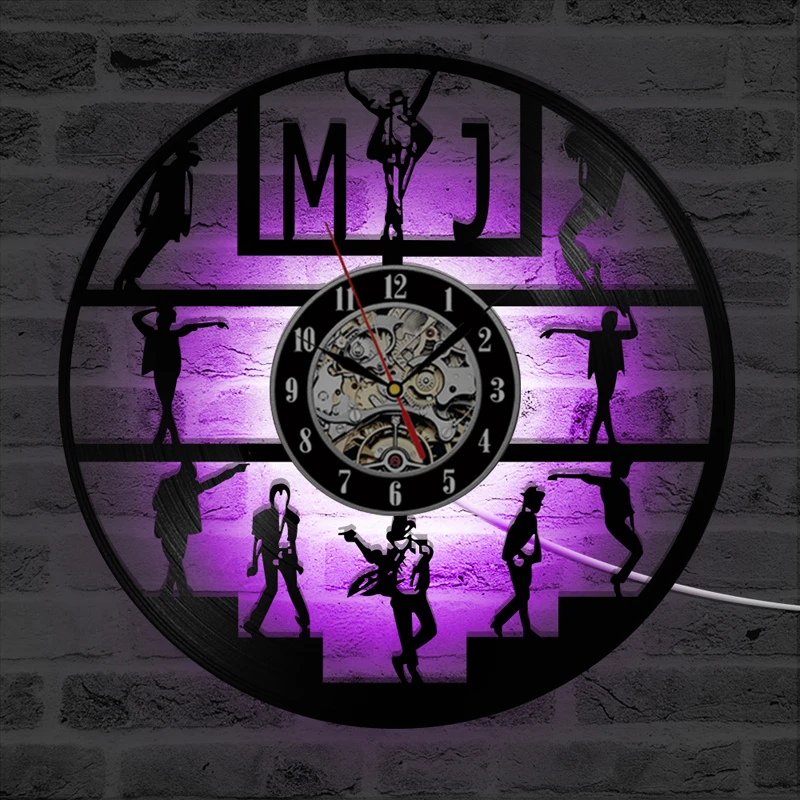 Майкл Джексон Висячие Часы светодиодный виниловая запись настенные часы современный дизайн Танцы со светящимися настенные часы домашний декор horloge