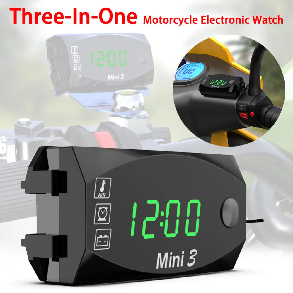 Универсальные мотоциклетные электронные часы-термометр Вольтметр Три в одном IP67 водонепроницаемые пыленепроницаемые светодиодные часы цифровой дисплей L3