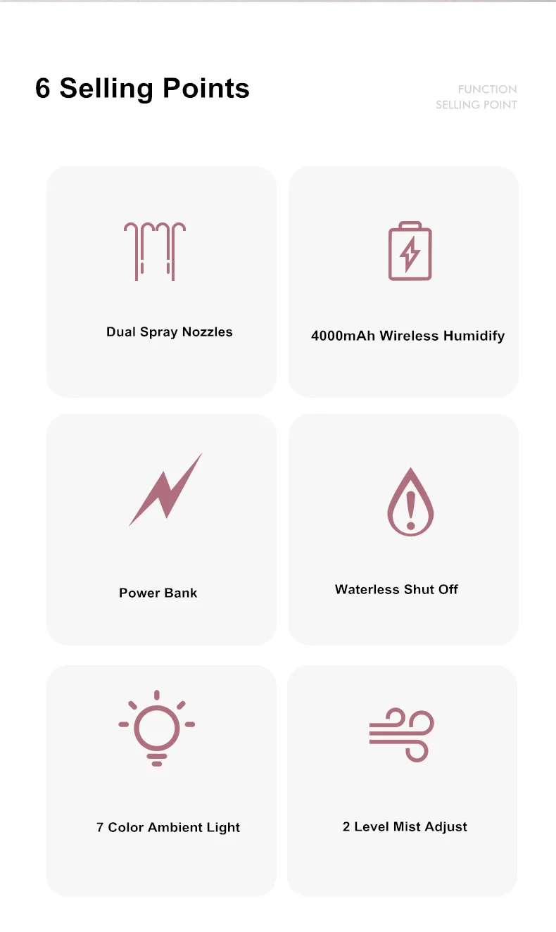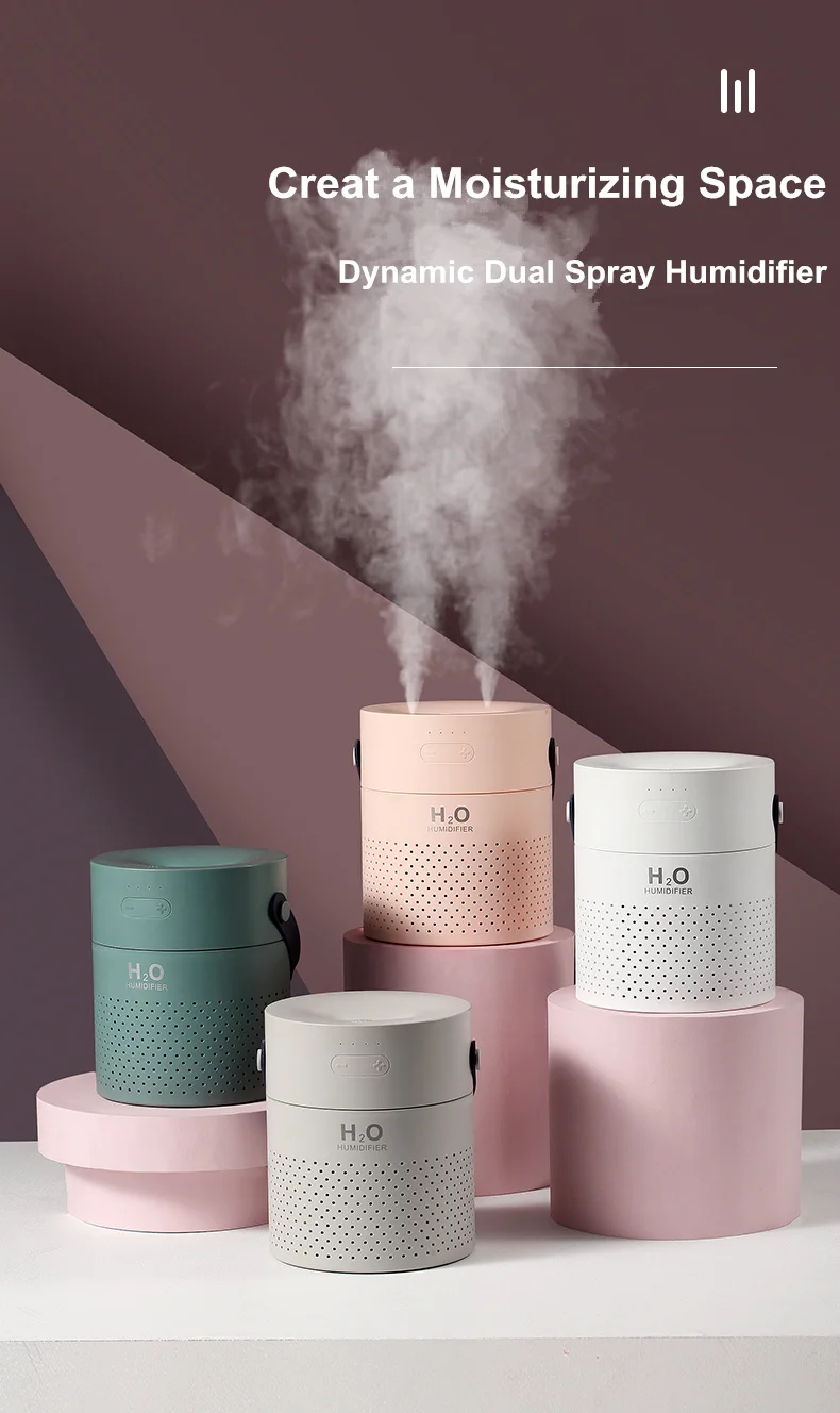 Материал: АБС + ПП + силиконРезервуар для воды: 1100 млРазмер: 135*135*168 ммЦвет: зеленый, розовый, белый, серыйМощность: 14,8 ВтНапряжение: 5 В постоянного токаВыход тумана: одна форсунка распылитель 30-50 мл/чДвойные насадки спрей: 60-100 мл/чАккумулятор: 18650/4000 мАчВремя зарядки: 3 часаВремя работы: двойные насадки непрерывный туман 4 часа, двойные насадки прерывистый туман 8 часовОдна насадка непрерывный туман 6 часов, одна насадка прерывистый туман 12 часовПолный резервуар для воды может работать: двойные насадки непрерывное распыление 13 часов, прерывистый распылитель 26 часовОдиночная насадка непрерывная работа 27 часов, прерывистая работа 40 часовОсобенность:1. В наличии Романтический светодиодный светильник успокаивающего цвета и светильник2. Батарея увлажнителя может работать 4-12 часов, резервуар для воды может работать 13-40 часов3, встроенная перезаряжаемая литиевая батарея 4000 мАч4. Простой модный дизайн H2O с цельнозернистым ремнем, вы можете занять любое место5, Сильный туман с ультра-совершенным дизайномСпособы подключения:Перезаряжаемая литиевая батарея по умолчанию1. Зарядное устройство для телефона2. Внешний аккумулятор3. USB-порт для ноутбукаПосылка включает:1. Увлажнитель * 12.USB-кабель * 13. Руководство * 1