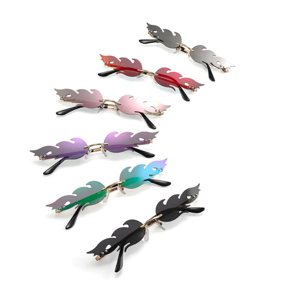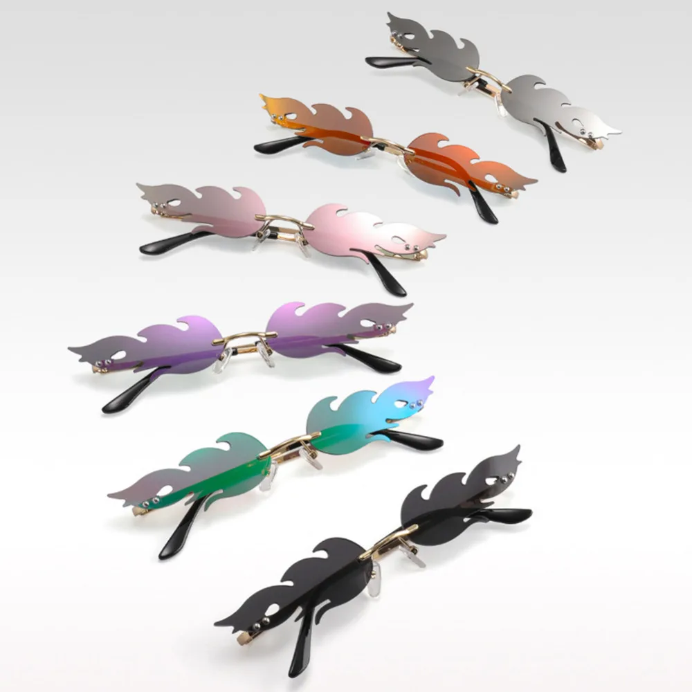 UV 400 волнистые солнцезащитные очки, трендовые узкие огненные солнечные очки, автомобильные очки для вождения, очки без оправы, уличная одежда, очки L15