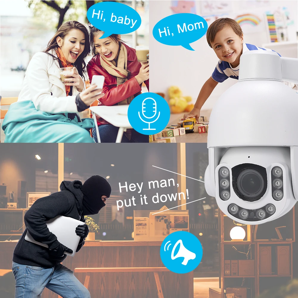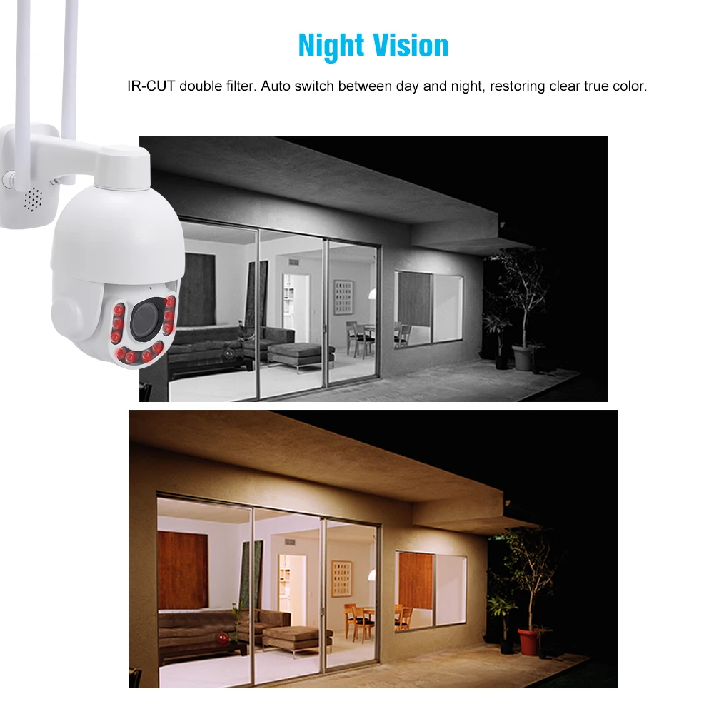 Это 2.5in WiFi Супер Мини скоростная купольная камера PTZ с милым и компактным дизайном, но все еще с мощными функциями. Это занимает меньше места и может удовлетворить ваши потребности в различных случаях установки. К вашим услугам в P2P plug and play, 2,8-12 мм 4X оптический зум Автофокус Макро объектив, HD 1080P видео запись, и он оснащен 10 шт Массив Инфракрасный светодиодный свет, и собран в IR-CUT, нет цвета, который обеспечивает хорошее дневное и ночное видение. Он также оснащен функциями обнаружения движения, водонепроницаемости, слотом для tf-карт и контролем приложений для телефона и т. д. это хороший выбор для дома, магазина, офиса и других необходимых мест.