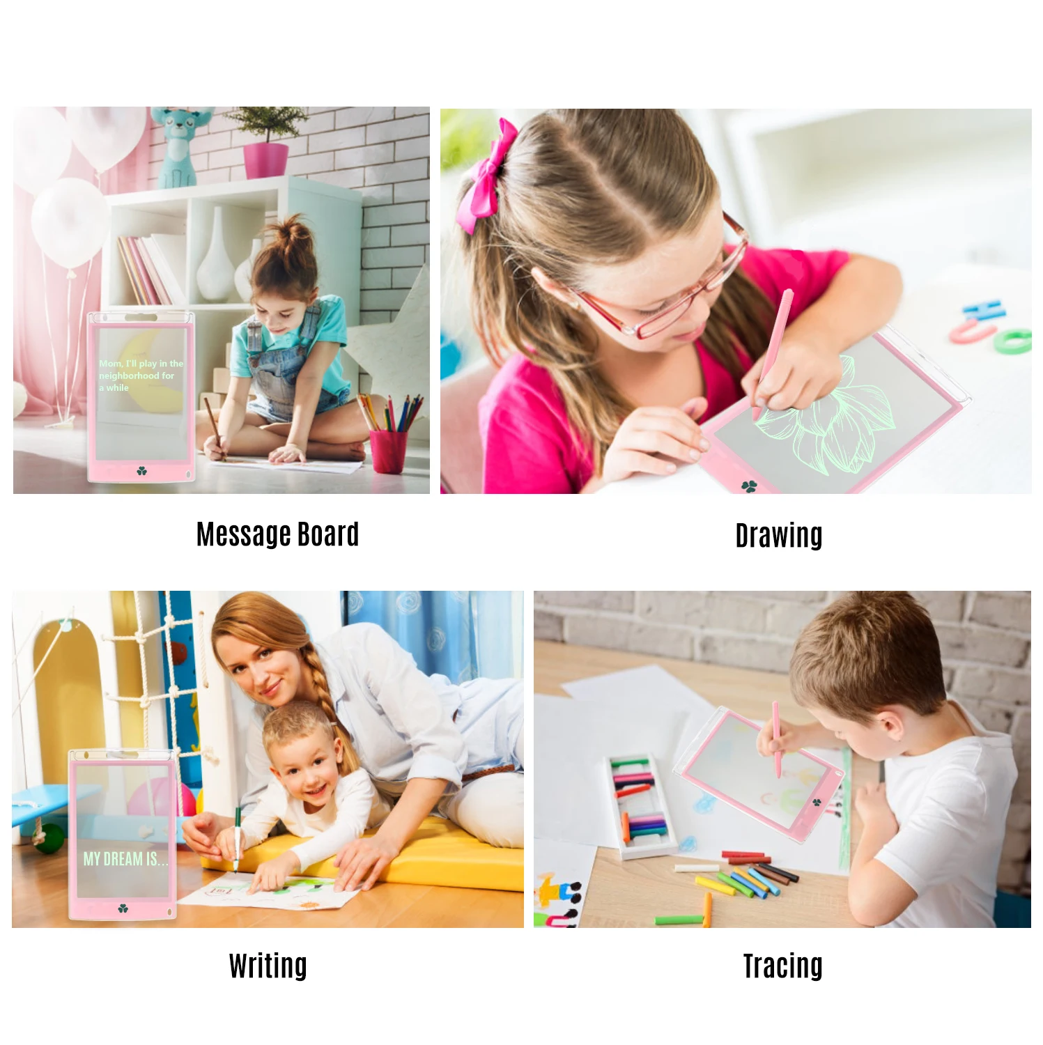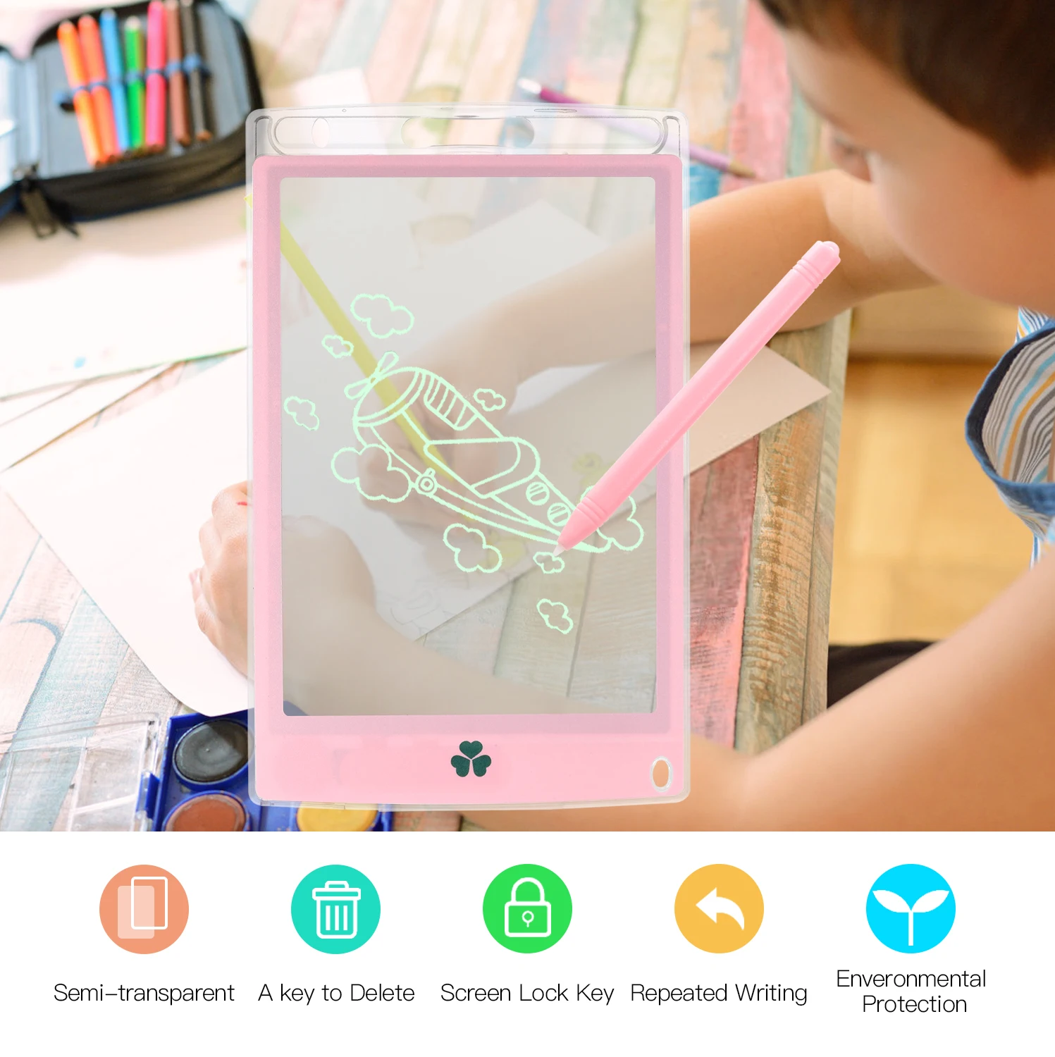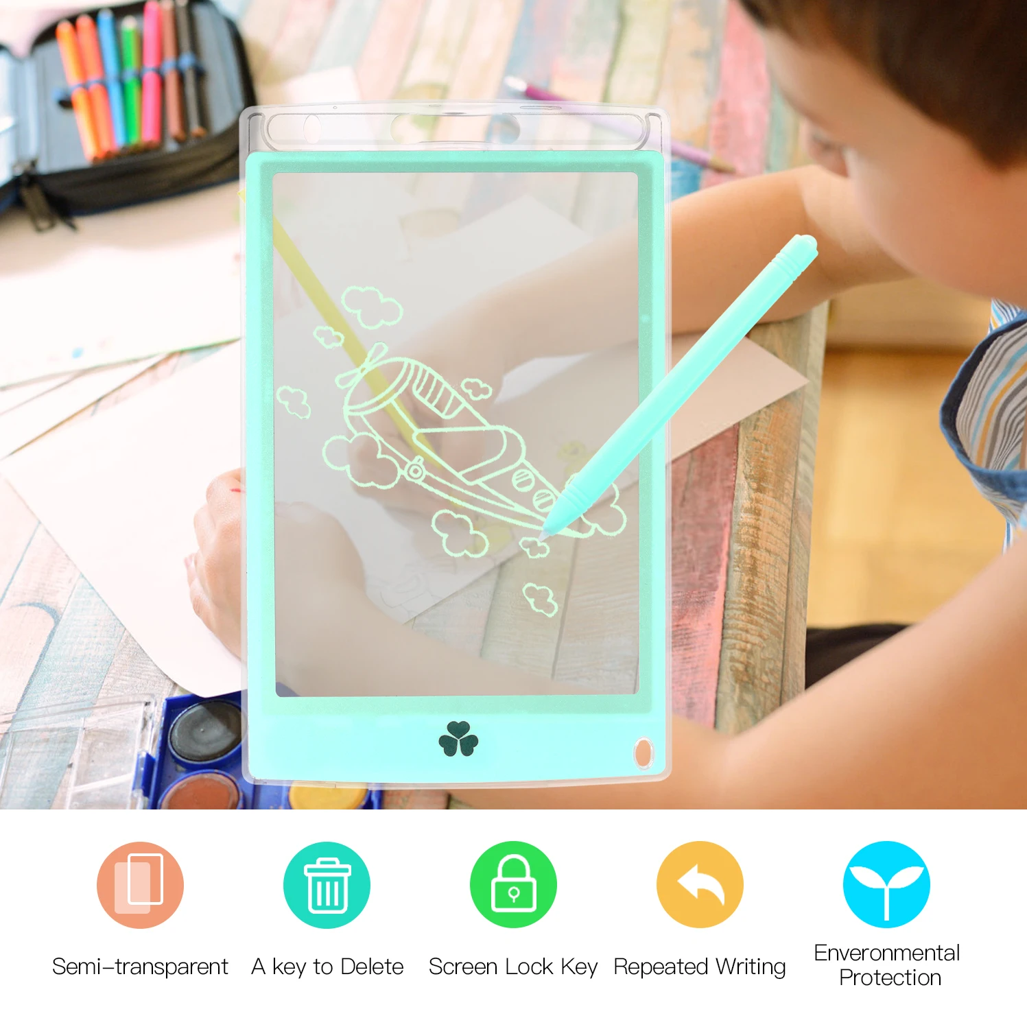 【Жк-планшет для письма 】:8,5 дюймов ЖК-дисплей рукописного ввода, толщина 5 мм, легкий и легко носить с собой. Полупрозрачный дизайн экрана, вы можете копировать чертеж и написание практики.