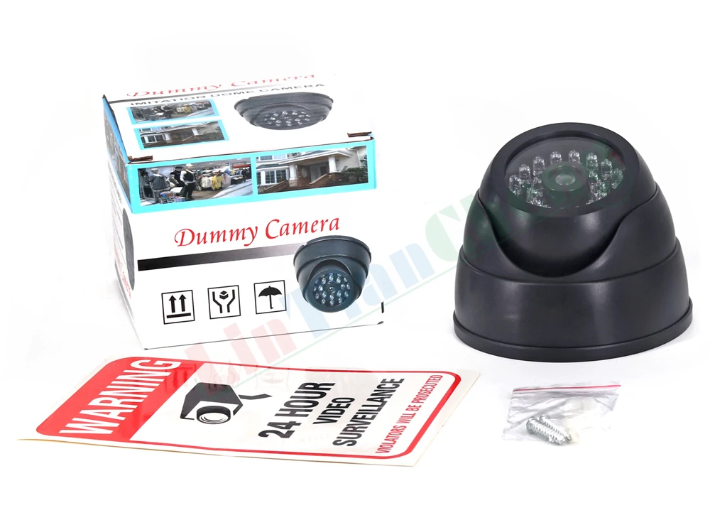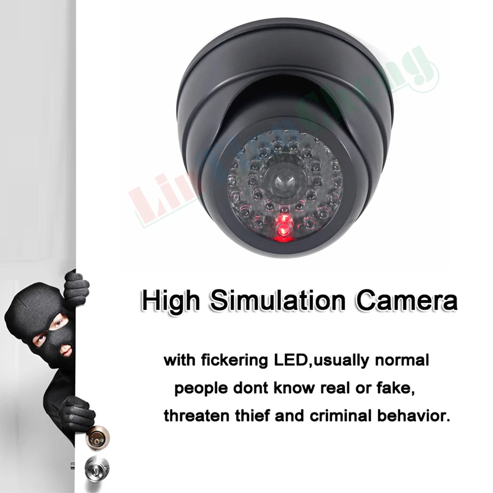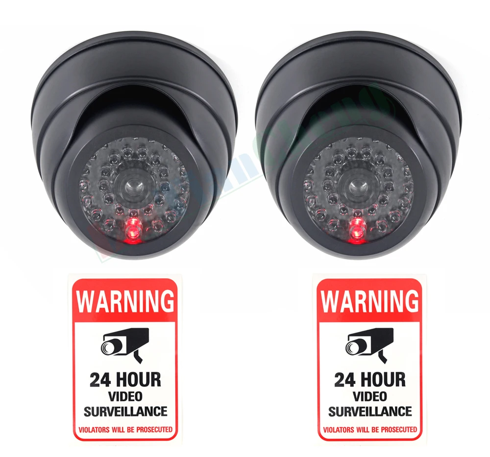 Это 2 поддельные камеры с красным светодиодный и выглядит как настоящая камера. Злодей/Вор трудно отличить его от реальной камеры видеонаблюдения, обеспечить эффективное сдерживание.