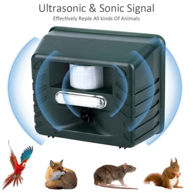 1. Он использует ультра звуковую технологию, звуковую сигнализацию/помехи и вспышку, чтобы изгнать вредителей. Это экологически чистый и гарантированно безвредный для человека, питомца. Это легко избавиться от всех видов животных захватчиков в вашего сада. Он очень эффективен в отпугивании кошек, собак, оленей, птиц, skunks, мышей, Лис, енотов и т. д.