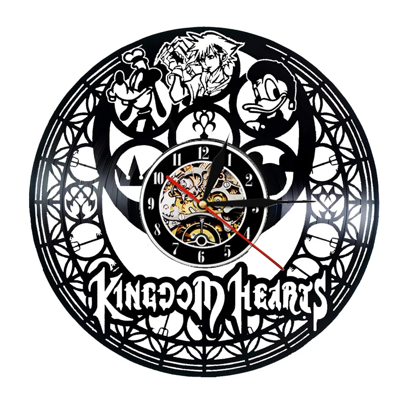 Винтажные настенные часы с героями мультфильма «Королевство Сердец», настенные часы с виниловой записью, современный дизайн, 3D светодиодный настенные часы, домашний декор, подарки для детей
