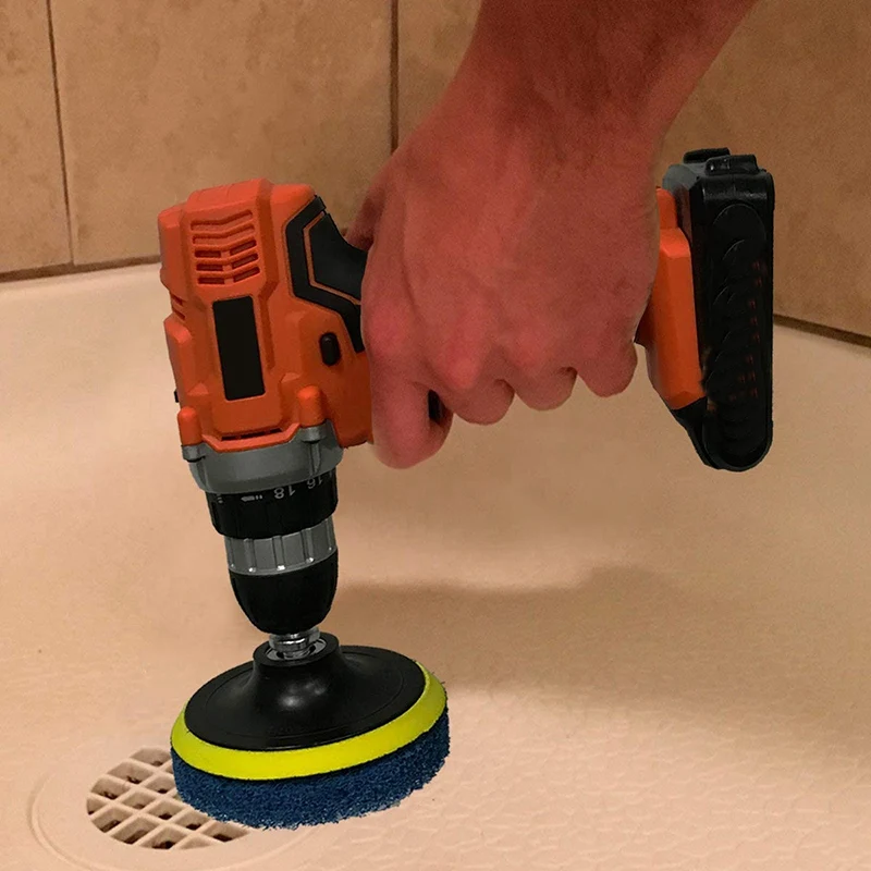 Универсальные принадлежности для буровых щеток-этот комплект для буровых щеток позволяет использовать любое приложение для очистки, идеально подходит для заточки, ванны, кирпича, обивки, раковины, душа, туалета, плитки, мрамора, керамика, ковер, автомобиль, колесо, очистка поверхности ванной комнаты. Дополнительно скрабы используется для удаления минерального депозита из посуды и кухонных раковин. Нейлоновые щетинки не царапают ваши поверхности ванной и душевой плитки.