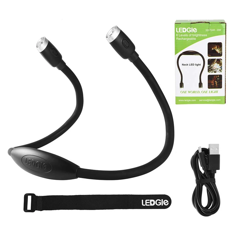 Светодиодный заряжаемая Светодиодная лампа для чтения GLE с 4 светодисветодиодный на шею, лампа для чтения, 3 уровня яркости, идеально подходит для книжных червей, рукоделия, чтения в постели или чтения в машине