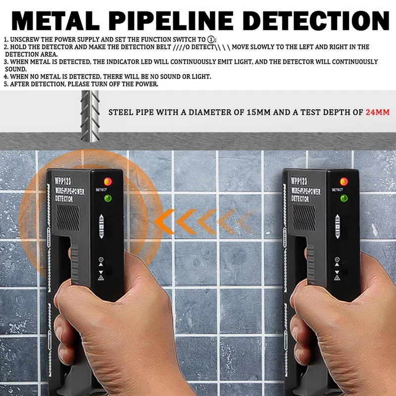 Обнаружение металла: диаметр 15 мм медная трубка, глубина 24 мм