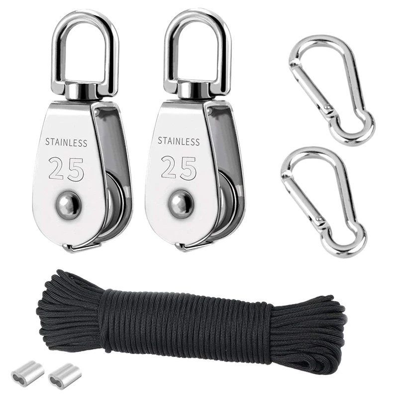 Блоки на шкивах: эргономичный дизайн, фиксированная верхняя крышка, легко тянуть веревку ручки, гладкие ролики обеспечивают хорошие веревки, шкив вращения головки цилиндра является прочным, вращение на 360 градусов, чтобы предотвратить Канат