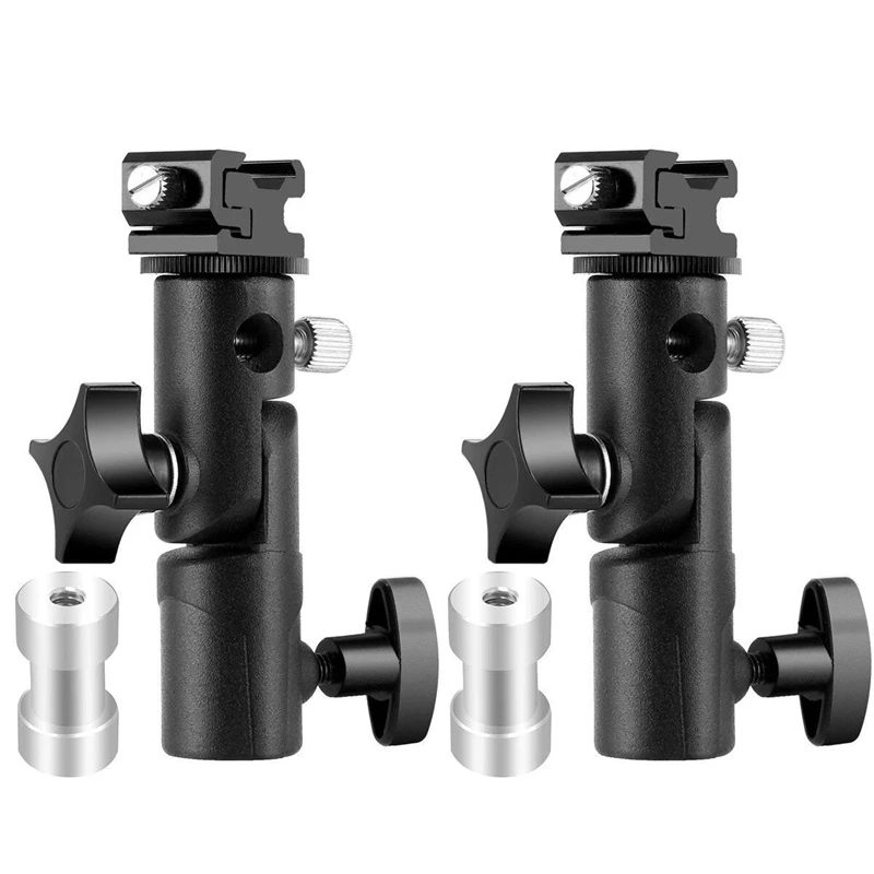 Легко монтируется, с отверстием для крепления зонта. Держатель для вспышки с холодным башмаком сверху, который подходит для всех стандартных вспышек горячего башмака. Прикрепите винтовой адаптер 1/4-3/8 дюйма для крепления кронштейна на штатив или светильник для камеры.