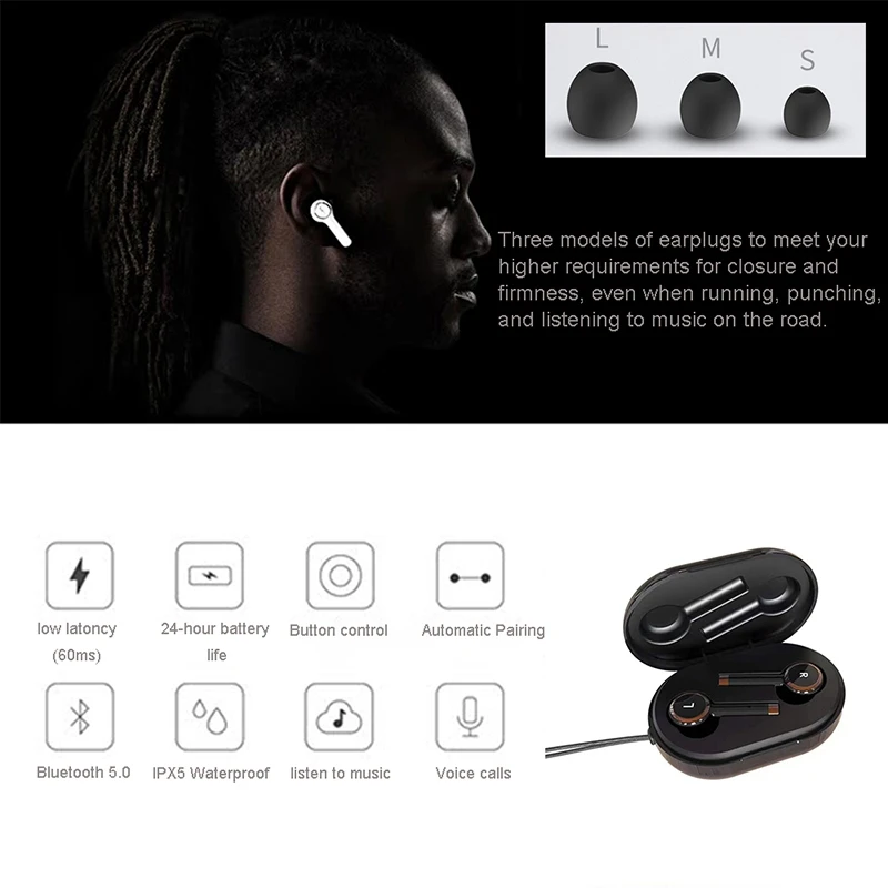 Эргономичный дизайн. Используйте Беспроводные наушники с эргономичным дизайном, поэтому легко вставляйте в уши и приносим необычайный комфорт и безопасность, отличаясь от других. Ощущение невидимости, отсутствие дискомфорта или боли, даже если вы носили их весь день. Настоящая беспроводная, настоящая музыка, действительно удобная, действительно свободная.