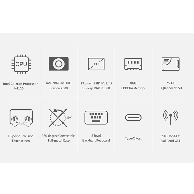 1.Windows 10 OS,Windows 10 возвращает пусковое меню из Windows 7 и вводит новые функции, такие как веб-браузер Edge, который позволяет отмечать веб-сайт на вашем sn, 2.Для процессора Celeron серии N N4120 четырехъядерный процессор с четырьмя потоками 1,1 ГГц, до 2,6 ГГц. Сверхнизковольтная платформа и четырехъядерный процессор обеспечивают максимальную высокую эффективность работы